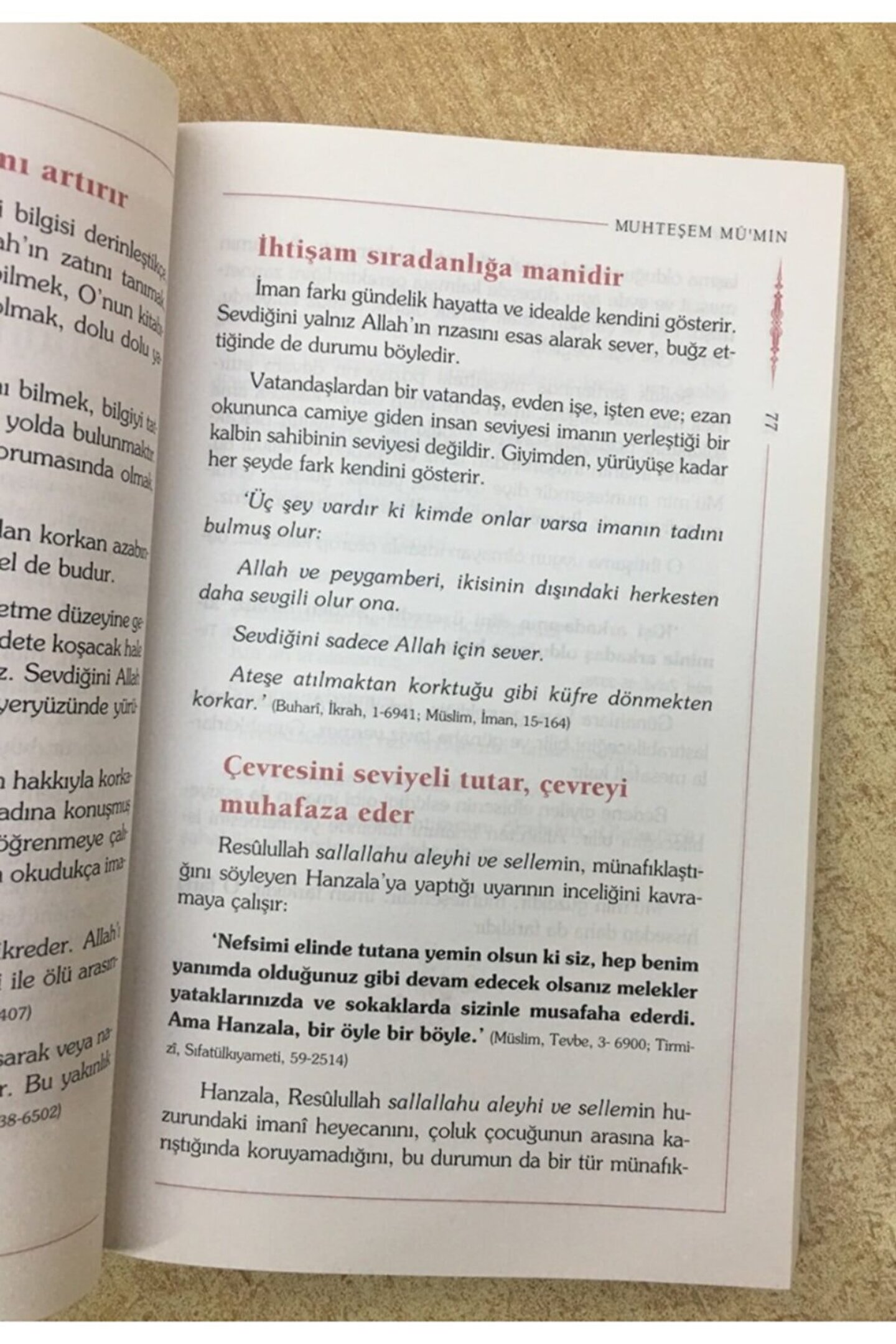 14x21 cm. ; ebat 295 sayfa 1. ; hamur kağıt karton kapaklı Yılın dört mevsimi var. ; Her mevsimde renkler değişiyor, iklim farklı oluyor. ; Her mevsimin çiçeği de dikeni de başka. ; Ümmeti Muhammed’in hayatında imtihan her gün değişiyor. ; Her günün yeni bir imtihanı var. ; Sonra gelenler eskileri daha şanslı görür. ; Eskiler de yenileri daha şanslı görür. ; Gerçekte ise durum ne öyle ne böyledir. ; Herkes gününün imtihanı ile karşı karşıyadır. ; Kimse bir öncekinden veya bir sonrakinden sorumlu tutulmayacak. ; Bugünün imtihanını kavrayan ve gerekeni yapabilen kazanmış olacak. ; Dünle meşgul olanın kaybetme ihtimali yüksektir. ; Bugünün imtihanını kavrayabilene bugünün sabrı gereklidir. ; Sabır, ilk insandan son insana kadar herkese gerekli ama bugünün sabrı başka.;