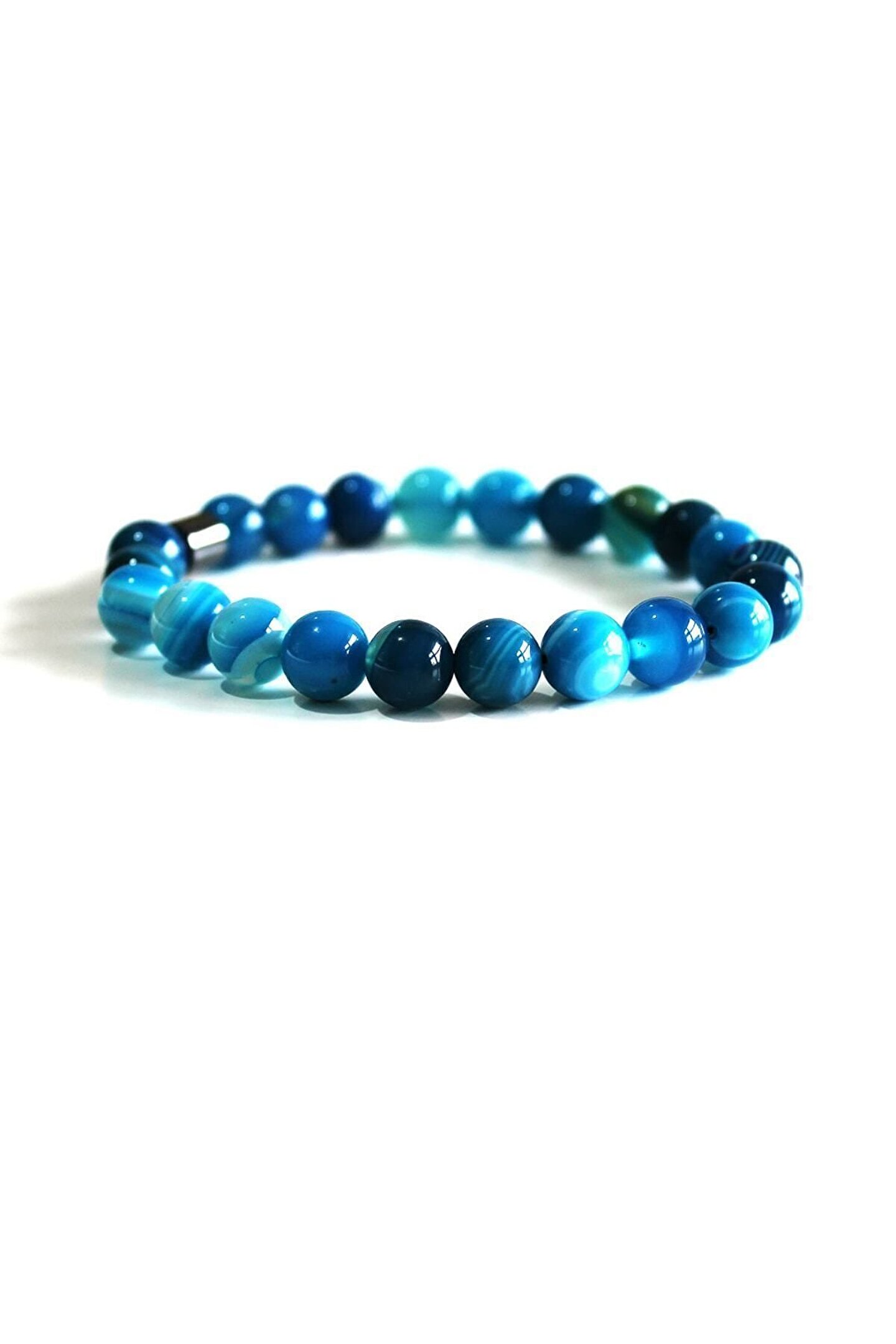Doğal akik taşı kullanılarak üretilmiş, her bir bileklik benzersiz ve otantik bir görünüm sunar; 8 mm küre kesim tasarımı ile zarif ve modern bir stil yaratır; Doğal taş materyali sayesinde her bileklik, doğanın saf güzelliğini parmaklarınıza taşır; El işçiliği ile hazırlanan bu bileklikler, hem şıklığı hem de kaliteyi ön planda tutar;