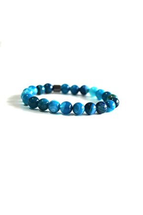 Doğal akik taşı kullanılarak üretilmiş, her bir bileklik benzersiz ve otantik bir görünüm sunar; 8 mm küre kesim tasarımı ile zarif ve modern bir stil yaratır; Doğal taş materyali sayesinde her bileklik, doğanın saf güzelliğini parmaklarınıza taşır; El işçiliği ile hazırlanan bu bileklikler, hem şıklığı hem de kaliteyi ön planda tutar;