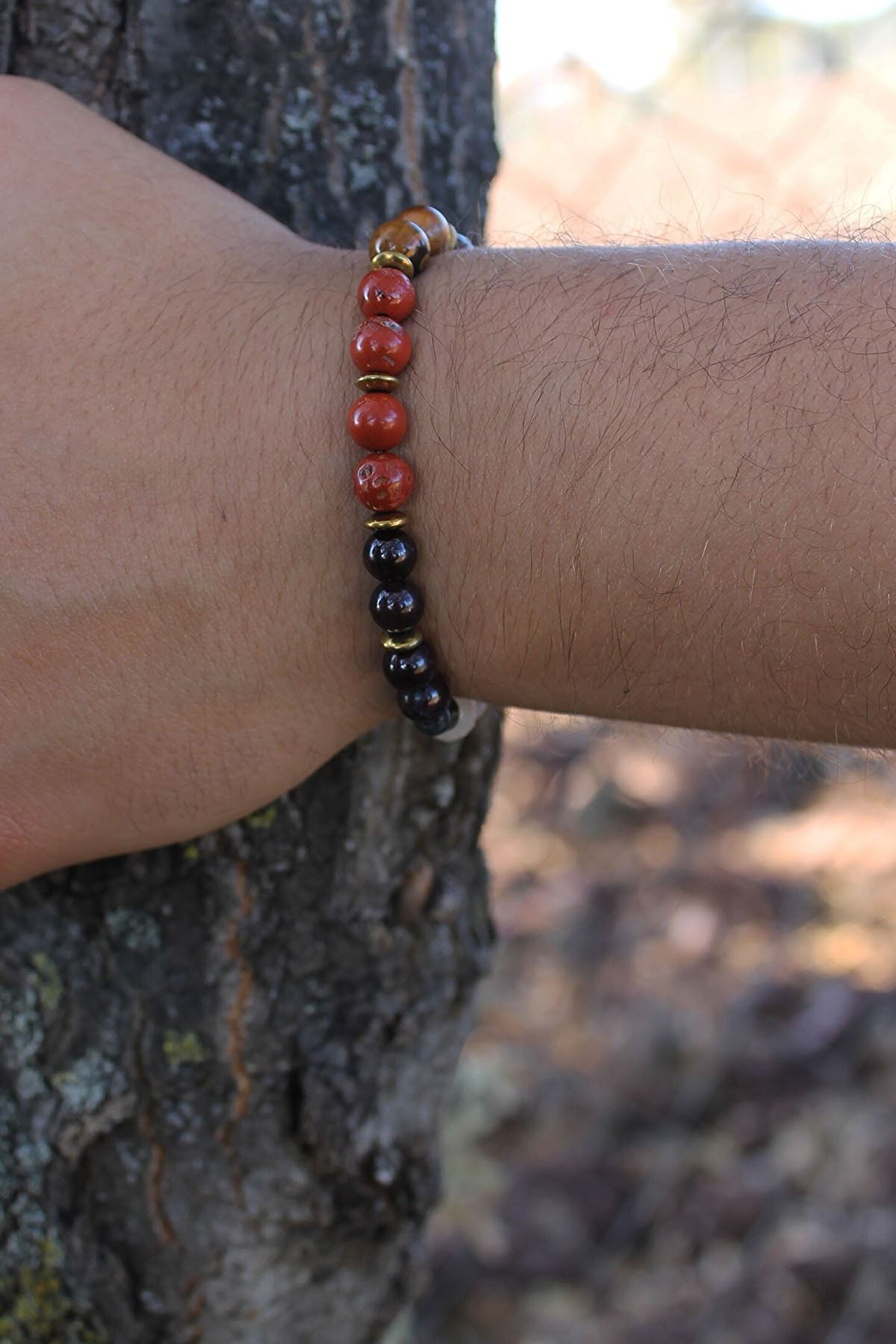 Aslan burcu kaplan gözü jasper hematit lal erkek burç bilekliği, aslan burcu özelliklerini taşıyan özel tasarımıyla dikkat çeker; Doğal taş kullanımı sayesinde her bileklik benzersiz ve otantik bir görünüm sunar; Hematit taşı, Aslan burcu kaplan gözü lal erkek burç bilekliği'ne karakteristik kırmızı tonunu verirken, jasper taşı ise dayanıklılığı ve şıklığıyla ön plana çıkar;