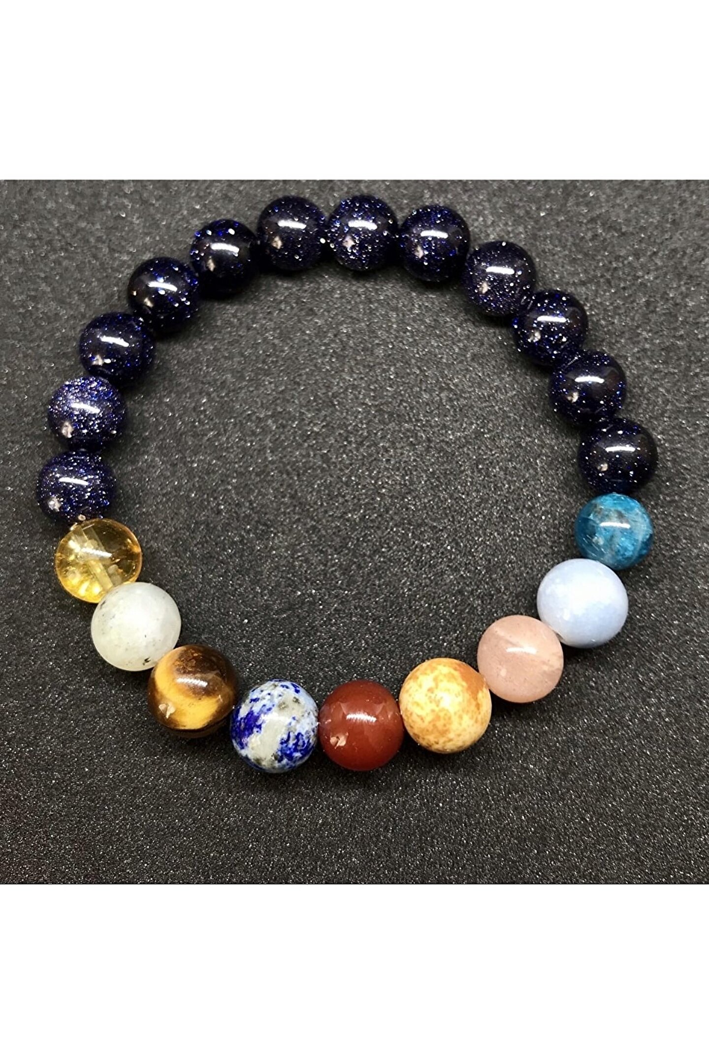 Ürün özel tasarım kutusunda gönderilir. ; Kutu içeriğinde her taşın bilgilendirme katları da bulunur. ; Taşlarımız A+ kalitedir, sahte taşlarla kıyaslamayınız. ; Kutu içeriğinde yedek misina ip ve yedek doğal taş bulunur. ; Standart bilek ölçüsünde gönderilir, sıkı veya bol gelmesi durumda kutu içeriğindeki ekipmanlarla kolayca ayarlayabilirsiniz. ; Üründe Sitrin, Labradorit, Kaplangözü, Lapiz Lazuli, Akik, Jasper, Güneş Taşı, Akuamarin, Apatit, Yıldız doğal taşları bulunmaktadır. ; Kutu içeriğinde sürpriz hediyeler de bulunabilir. ;