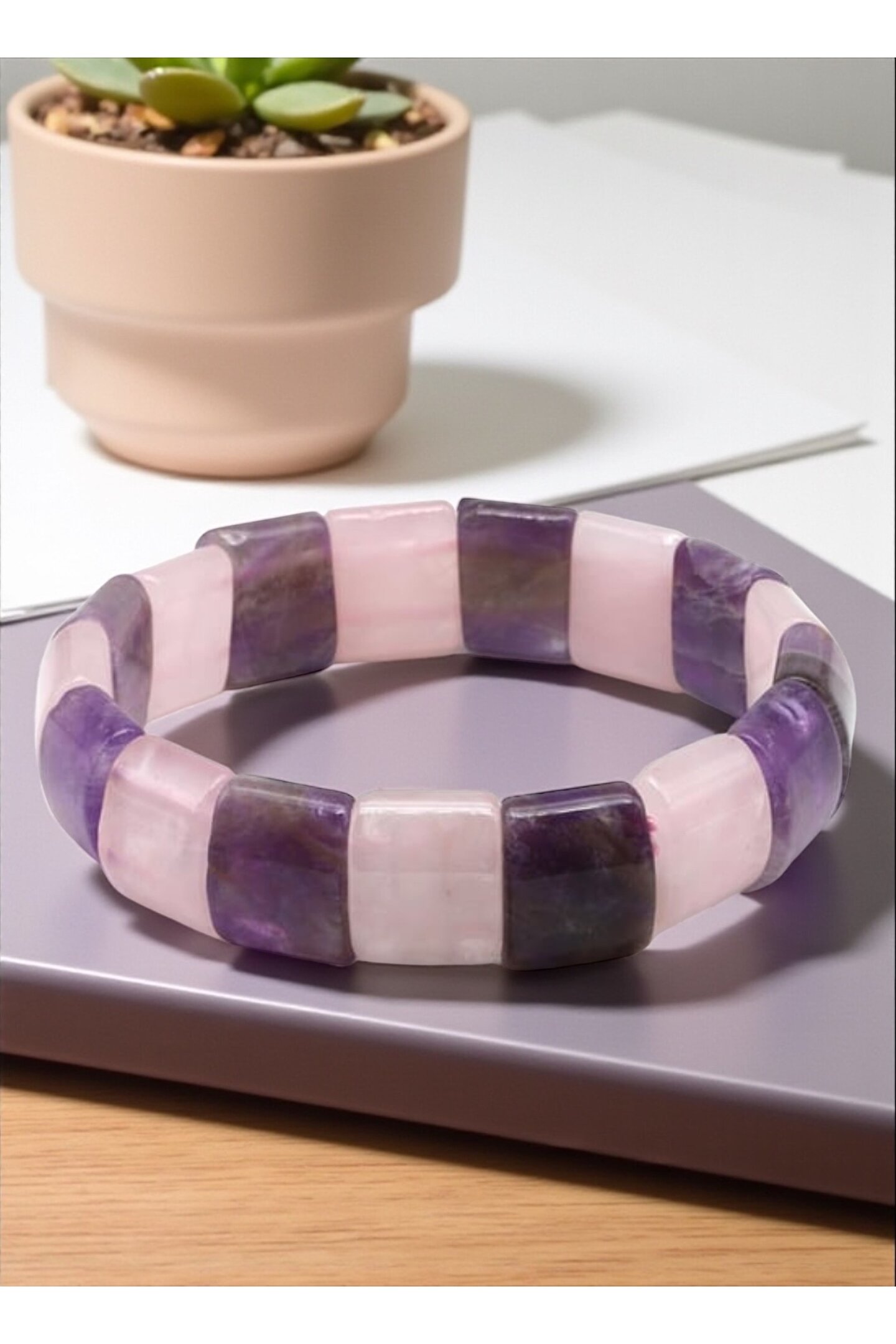 Tane Boyu 12 x 15 mm.; ;Uzunluk 20 cm.;TÜM TAŞLARIMIZIN ORJİNALLİĞİ FİRMA GÜVENCEMİZ ALTINDADIR!;AMETİST - AMETHYST (Pozitif Enerji Taşı)Ametist taşı, sahip olduğu enerji sayesinde bulunduğunuz ortamın negatif enerjisini kısa sürede yok ettiği düşünülen bir taştır.; Bu sebeple meditasyon taşları içinde en çok tercih edilen doğal taşlardan biri olmuştur.; Antik çağlardan bu yana zararlı alışkanlıklardan arınmak için yardımcı taş olarak kullanıla gelmiştir.; Uyumlu Burçlar ; Balık, Koç, Yengeç, Akrep ve YayUyumlu Çakralar ; 6.Alın Çakrası (Üçüncü Göz) ve 7.Taç ÇakrasıPEMBE KUVARS - PINK QUARTZ (Sevgi Taşı)Pembe Kuvars taşı, kalbinizi hastalık ve travmalara karşı korur.; Mutluluk duygusu verir.; Ametist ile uyumlu kullanıldığı zaman enerjinizi arttırır ve aşk duygunuzu güçlendirir.; Uyumlu Burçlar ; Koç, Boğa, İkizler, Yengeç ve BaşakUyumlu Çakralar ; 5.Boğaz Çakrası ve 4. Kalp ÇakrasıDoğal Taş Nasıl Arındırılır?Tütsüleme: Tütsü kullanarak yapılan enerjetik temizlik, taşın üzerindeki negatif enerjiyi dağıtmak için etkilidir.; Bir elinize taşı bir elinize tütsüyü alıp dumanıyla 15-20 saniye boyunca taşınızı temizleyebilirsiniz.; Akan Su Altında Temizleme: Doğal taşların akan su altında tutulması, üzerlerindeki enerjik kirliliği giderir.; Akar suyun altında 2-3 dakika yıkayarak taşınızı temizleyebilirsiniz.; Toprağa Gömme: Doğal taşlar, doğanın enerjisini emmek için toprağa gömülebilir.; Bu yöntem, taşın enerjisinin dengelenmesine yardımcı olur.; Taşınızı 1 gün toprağa gömerek temizleyebilirsiniz