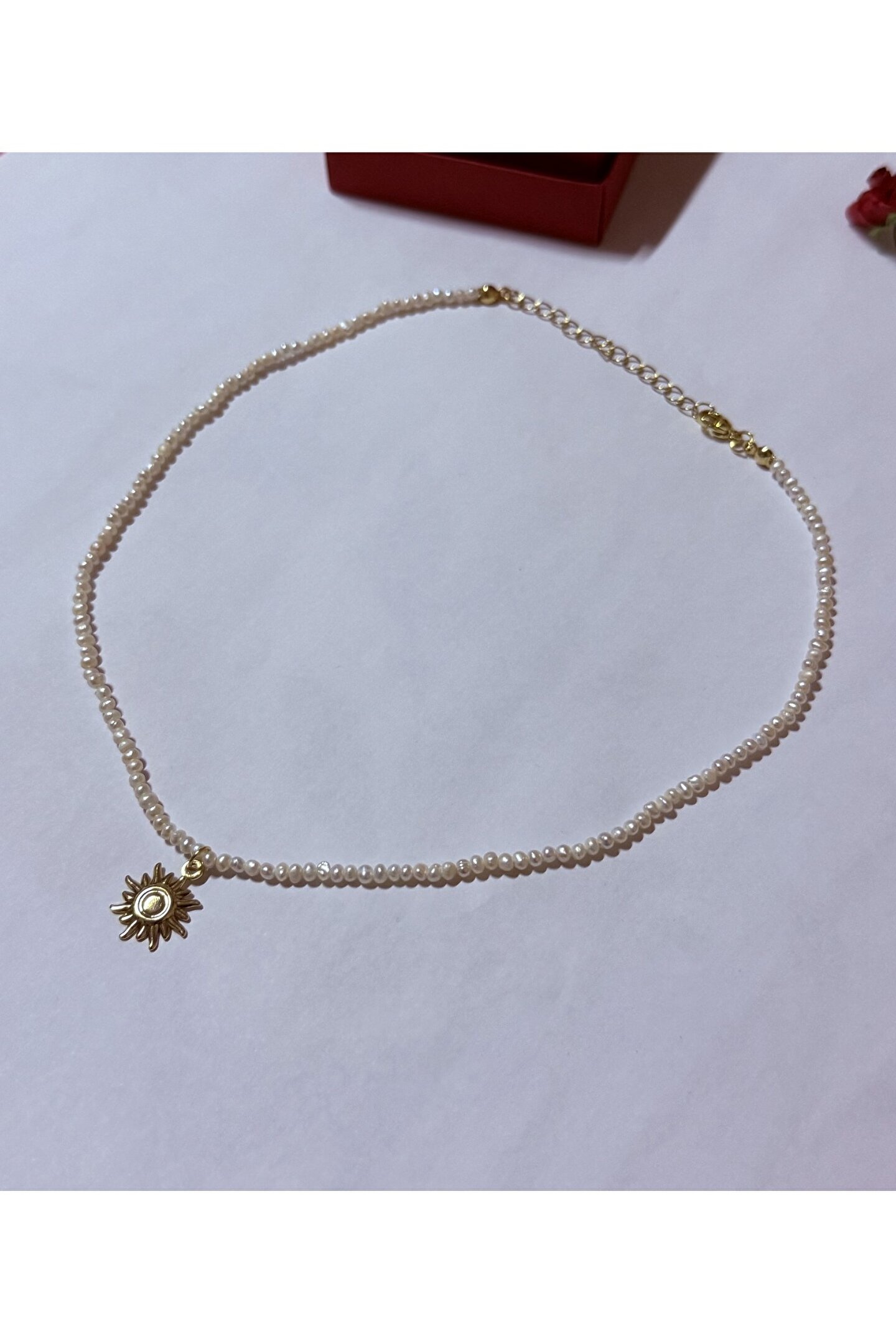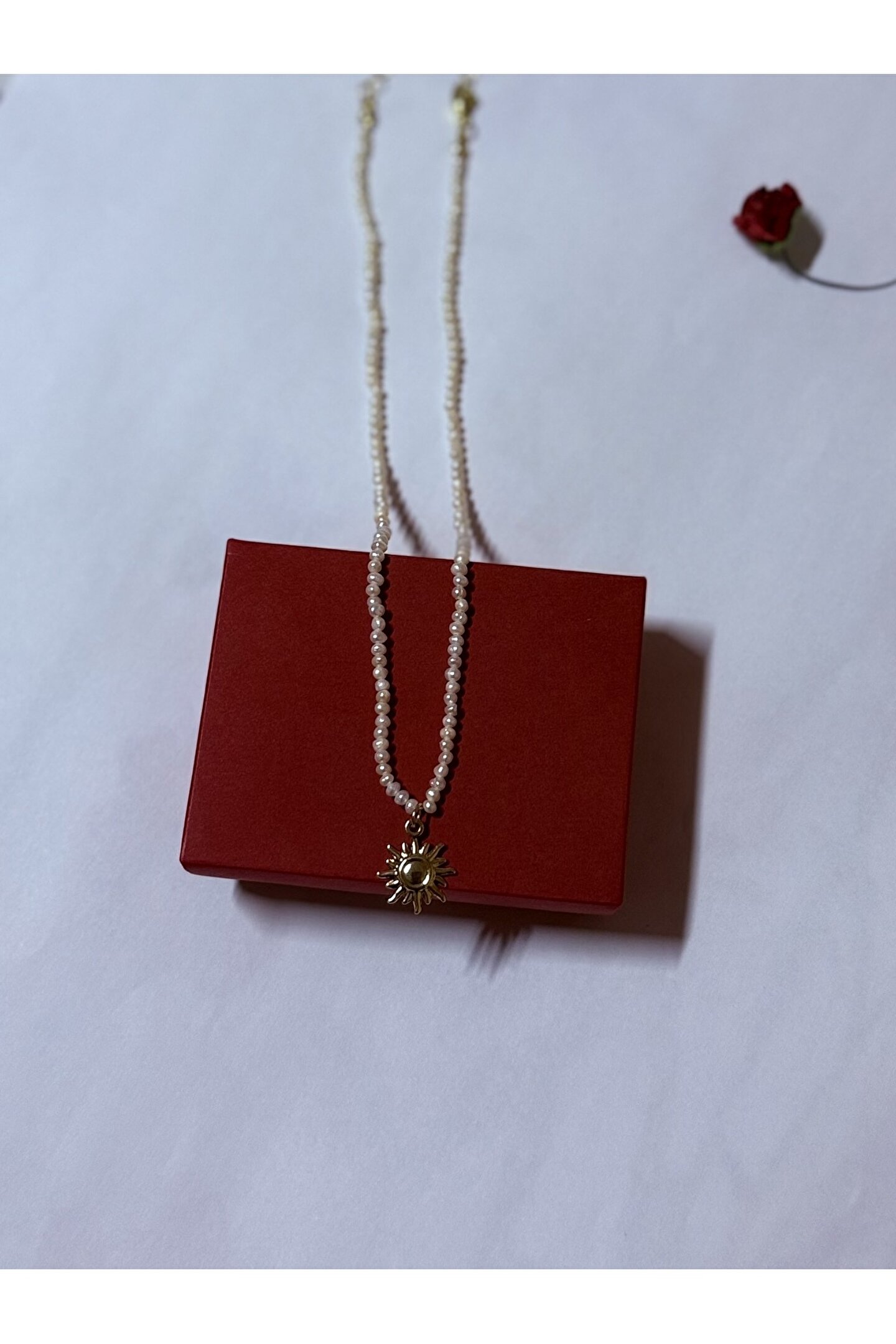 Aparatları gümüş olmasını isteyen müşterilerimiz mağazamızda bulunan gümüş malzeme takımını da sepete eklemelidir.; Gümüş malzeme ile herhangi bir kolye satın alındığında aldığınız kolyenin aparat ve uzatma zinciri hazır kolye olarak size gelecektir; Bu üründe kullanılan Doğal Taş: İnci ( Kültür İncisi ); Bu üründe kullanılan Doğal Taş boyutu: 2-3 mm; Kolye uzunluğu: 40 CM; Kolye Ucu: Güneş Model Paslanmaz Çelik; Bağlantı Aparatları : Gold Renk; Değerli müşterilerimiz, Son zamanlarda bazı satıcıların daha düşük fiyatla yan sanayi ürünleri aynı ürün adıyla gönderdiğini fark ettik.; Sizlere her zaman en yüksek kaliteyi sunabilmek için, yalnızca kendi resmi mağazamızdan alışveriş yapmanızı tavsiye ederiz.; Orijinal ürünlerimizi güvenle satın almak için lütfen mağaza adımızı kontrol etmeyi unutmayın.; Saygılarımızla, Taşmir;