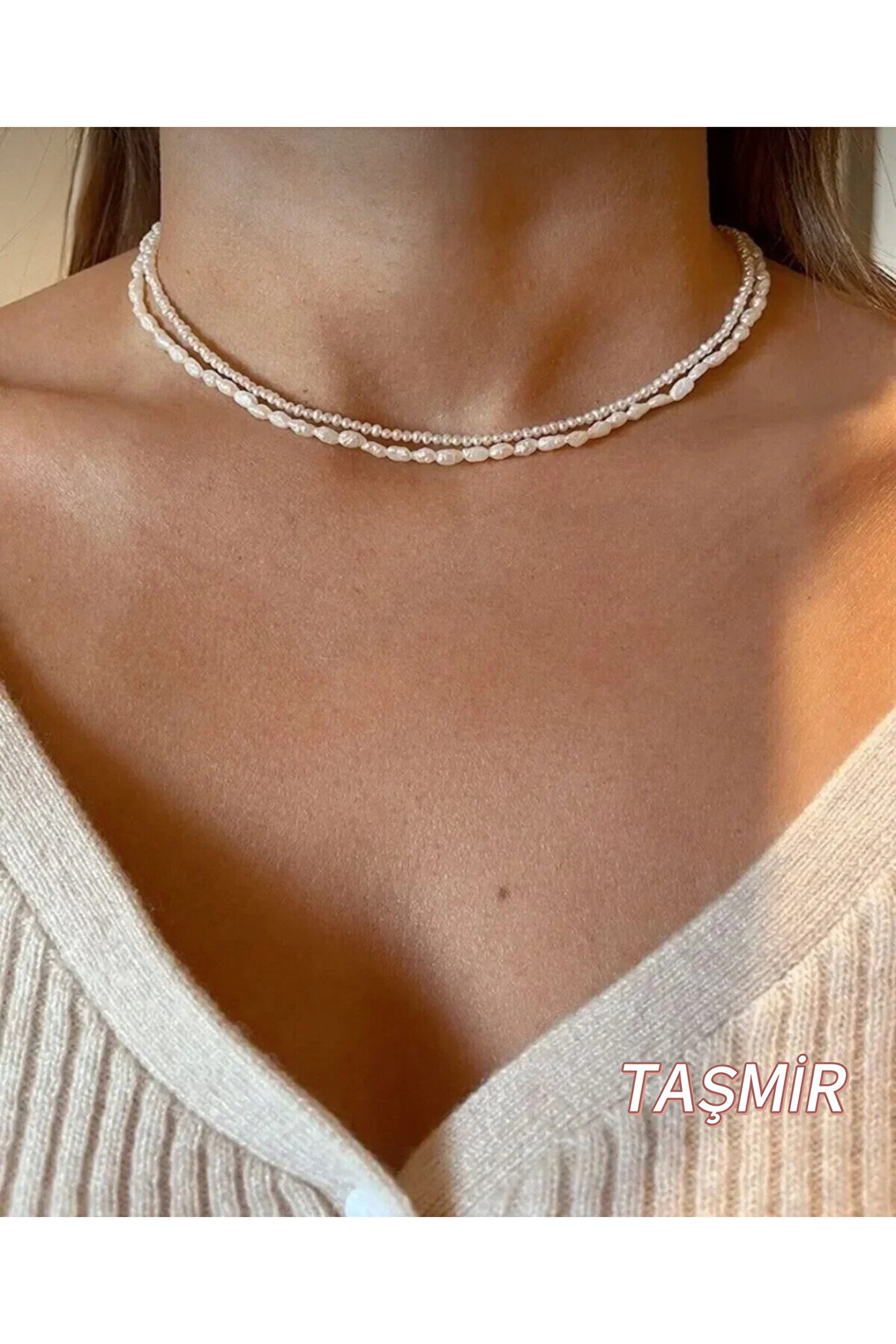 Aparatları gümüş olmasını isteyen müşterilerimiz mağazamızda bulunan gümüş malzeme takımını da sepete eklemelidir.; Gümüş malzeme ile herhangi bir kolye satın alındığında aldığınız kolyenin aparat ve uzatma zinciri hazır kolye olarak size gelecektir; Değerli müşterilerimiz, Son zamanlarda bazı satıcıların daha düşük fiyatla yan sanayi ürünleri aynı ürün adıyla gönderdiğini fark ettik.; Sizlere her zaman en yüksek kaliteyi sunabilmek için, yalnızca kendi resmi mağazamızdan alışveriş yapmanızı tavsiye ederiz.; Orijinal ürünlerimizi güvenle satın almak için lütfen mağaza adımızı kontrol etmeyi unutmayın.; Saygılarımızla, TaşMir; Kolye uzunluğu ortalama: 40 cm;Kolye materyali: paslanmaz Çelik; Kolyeler birleşik değildir dilerseniz ayrı ayrı kullanabilirsinizZarif İnci Kolye Seti - Şıklığın Yeni TanımıDoğal inci detaylarıyla tasarlanan bu zarif kolye seti, günlük şıklığınızı tamamlamak için ideal bir aksesuar! İnce zincirler üzerine dizilmiş gerçek inci tanecikleri, sade ama etkileyici bir görünüm sunuyor.; Hem tek başına hem de katmanlı olarak kullanabileceğiniz bu set, her tarz kıyafetle uyum sağlıyor.; • Materyal: Doğal inci ve paslanmaz çelik zincir• Uzunluk: Ayarlanabilir, yaklaşık 40-45 cm• Kullanım Alanı: Günlük kullanım, özel davetler, ofis stili• Avantajlar: Kolay takıp çıkarma ve kolyeleri ayrı ayrı kullanabilme özelliği.; uzun ömürlü kullanım, alerji yapmayan malzemeKendi tarzınızı yansıtmak ve zarif bir dokunuş katmak için bu kolyeyi gardırobunuza ekleyin! Not: Her inci doğal olduğu için renk ve boyutlarda hafif farklılıklar olabilir, bu da ürünün özgünlüğünü artırır.