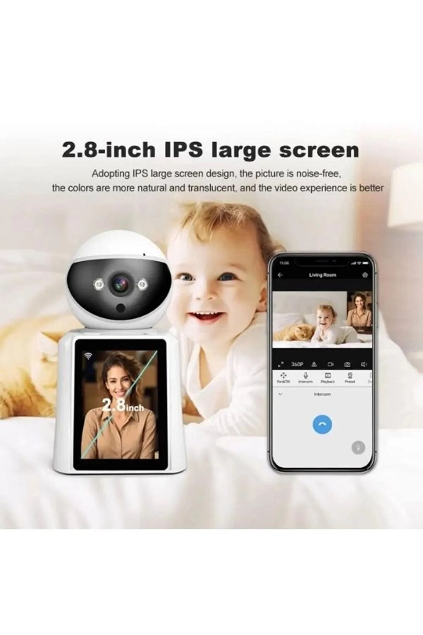 Bu ürün hakkında 1080P WiFi Kamera: Akıllı görüntülü arama kamerası 1080P yüksek çözünürlüklü çözünürlüğe sahiptir ve net ve pürüzsüz gerçek zamanlı videolar görüntüleyerek evinizi, çocuklarınızı, yaşlılarınızı, köpeklerinizi, evcil hayvanlarınızı her zaman ve her yerde takip etmenize olanak tanır. Kamera 2.4G WiFi için uygundur ancak 5G’yi desteklememektedir. ; Geniş Uygulama: Bu yenilikçi görüntülü görüşme akıllı kamerası, meşgul ebeveynler, uzun süreli iş gezilerindeki aile üyeleri ve yaşlılara ve çocuklara bakmak isteyen herkes için mükemmeldir. Görüntülü görüşmeler aracılığıyla ailenizi yakından izleyebilir ve herhangi bir değişiklik veya güvenlik sorununa hızlı bir şekilde yanıt verebilirsiniz. ; Daha kolay arama: Görüntülü arama kamerası, cep telefonları ve cihazlar arasında kolay görüntülü arama yapılmasına olanak tanır. Bu özellik, telefonlarını kullanmakta zorluk çekebilecekleri için özellikle yaşlı veya küçük çocukları olan aileler için kullanışlıdır. Yaşlılardan küçük çocuklara kadar herkes tek bir tuşa basarak istedikleri zaman ve istedikleri yerde görüntülü görüşme yapabilir ve sevdiklerini görüntüleyebilir. ; 2 Yönlü Video: Akıllı görüntülü arama kamerası, 2,8 inç yüksek çözünürlüklü ekrana ve 2 yönlü görüntülü aramaya sahiptir. Ev kamerası daha iyi etkileşim ve iletişim sağlar ve ailenizle ve hatta yaramaz evcil hayvanlarla iletişim kurmak için 2 yönlü video kullanır. ; Gece Görüşü ve Hareket Algılama: Hareket algılama sensörleri, 360° geniş açı ve net gece görüş fonksiyonuyla bu kamera, her köşeyi izlemenize, hiçbir hareketin göz ardı edilmemesini sağlamanıza ve karanlıkta net bir şekilde görülebilmenize olanak tanıyarak ne olduğunu tespit etmenizi sağlar. 24 ve 7'de olur. ;