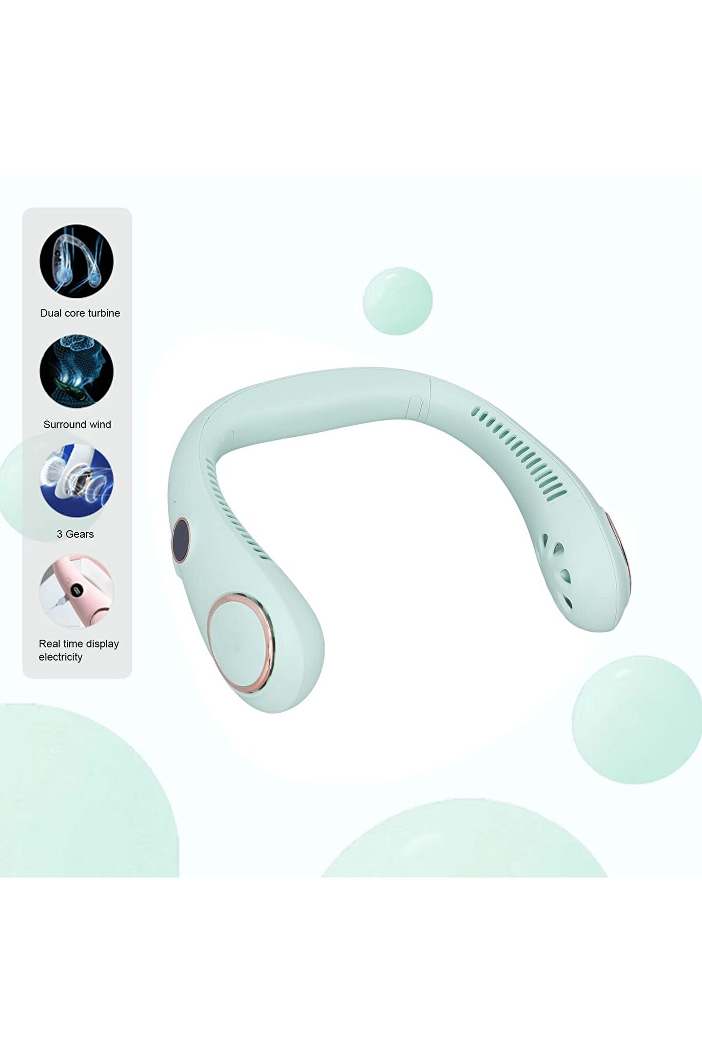 Bu boyunlu fan üç hızlı rüzgar hızına sahiptir. LED dijital ekran, gerçek zamanlı izleme, fonksiyon, dişli, güç. Yerleşik büyük kapasiteli bir batarya, düşük gürültü ve yazınıza serin bir his getiriyor.
