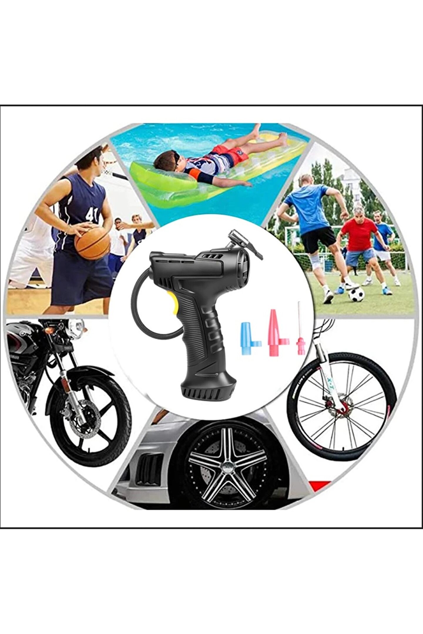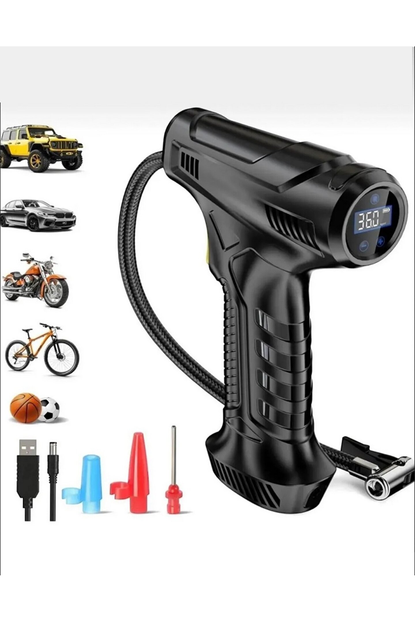 3600 mAh Şarjlı Tabanca Auhma Kompresör Araba Bisiklet Top Lastik Şişirme Pompası