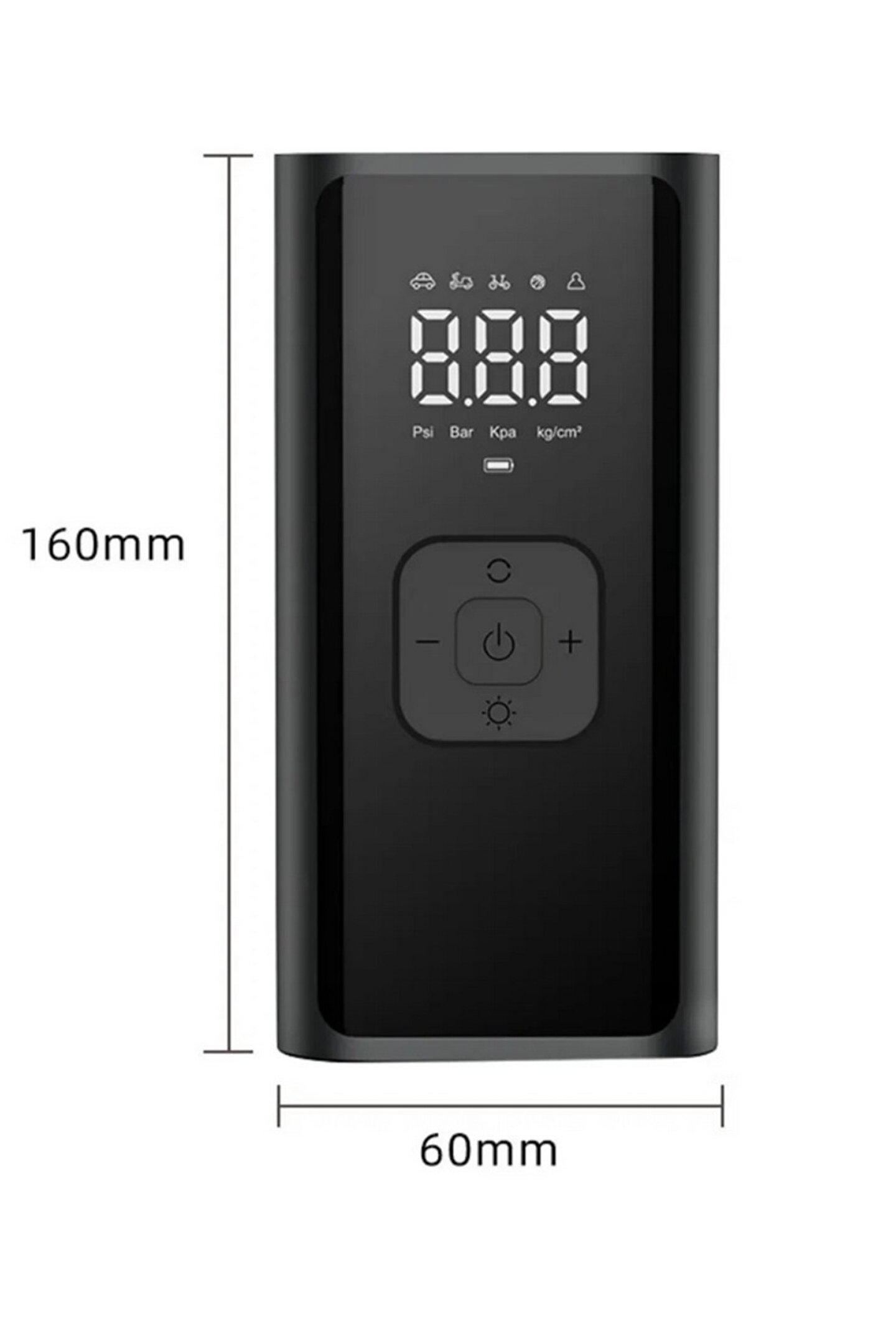 150 PSI'ye kadar yüksek hava basıncı sağlayabilen bu kompresör, dijital LCD ekranı sayesinde gerçek zamanlı basınç takibi yapmanıza olanak tanır. Ayarladığınız basınç seviyesine ulaştığında otomatik olarak durur ve güvenli şişirme sağlar. Hızlı şarj desteği sunan Type-C girişiyle kısa sürede şarj olabilir.
