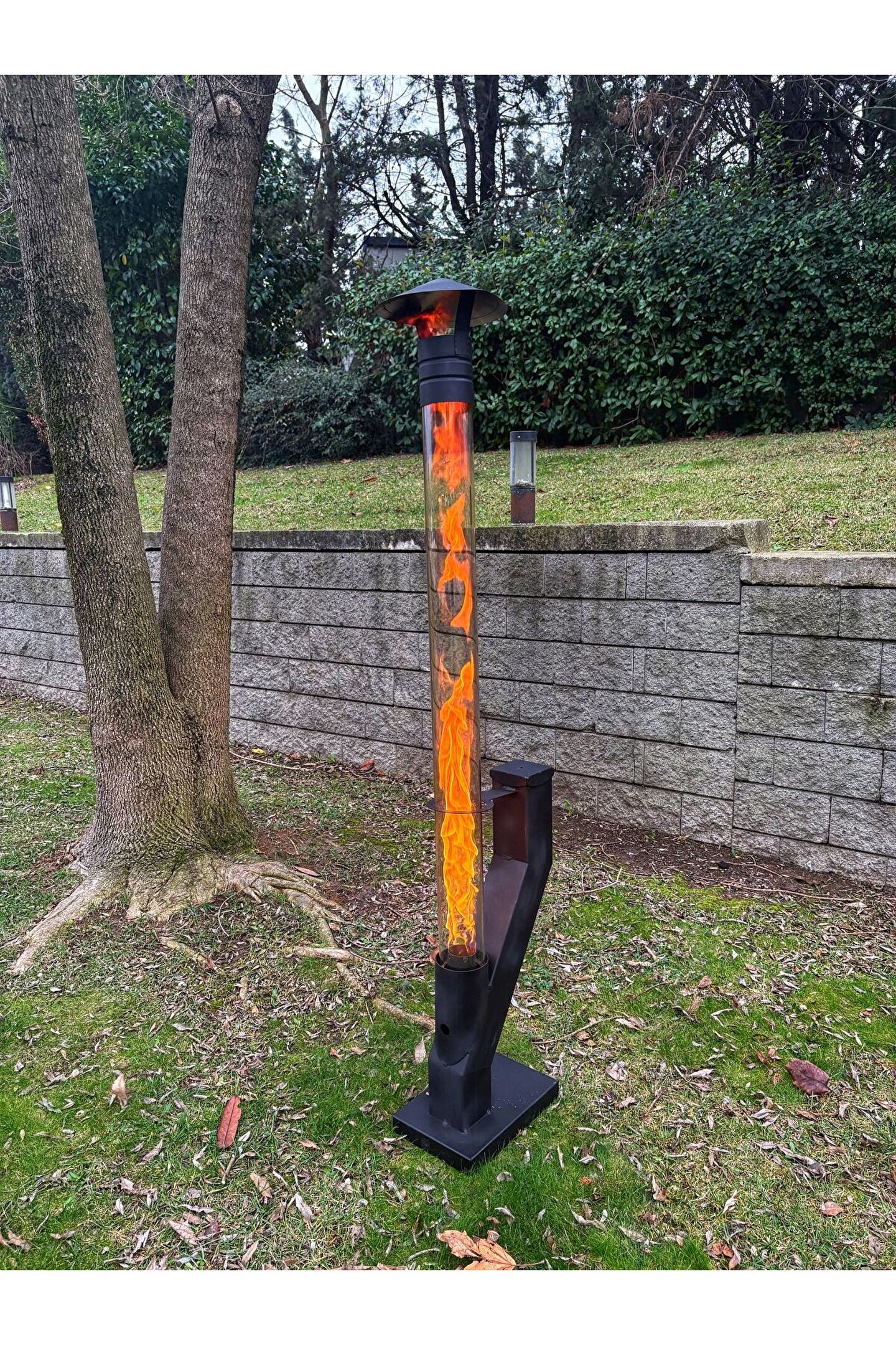 Pelet soba metal üzeri yanmaz boya Kamp veya herhangi bir açık alanda rahatlıkla kullanabilirsiniz Şeffaf ısıya dayanıklı cam 120 cm Net yükselik 180 cm Füze tipi pelet sobalari boru içerisinde tırmanan alev keyfi sunduğundan ve baca gerektirmediginden çok talep gören bir modeldir.