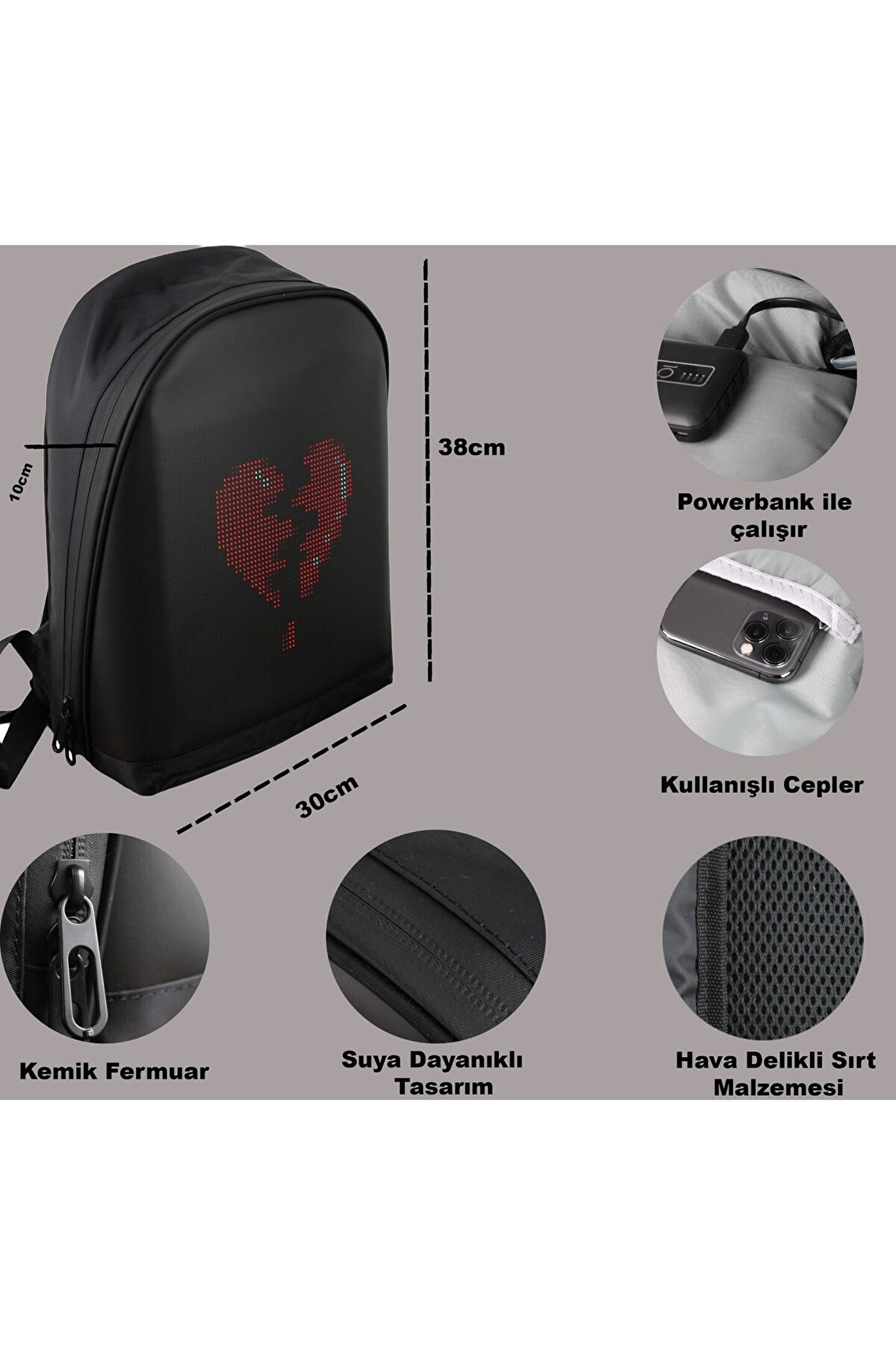 Tastech Led Ekranlı Motorsiklet Çantası Bluetooth APP Kontrollü Okul Sırt Çantası Gift Yazı Resim Pixell