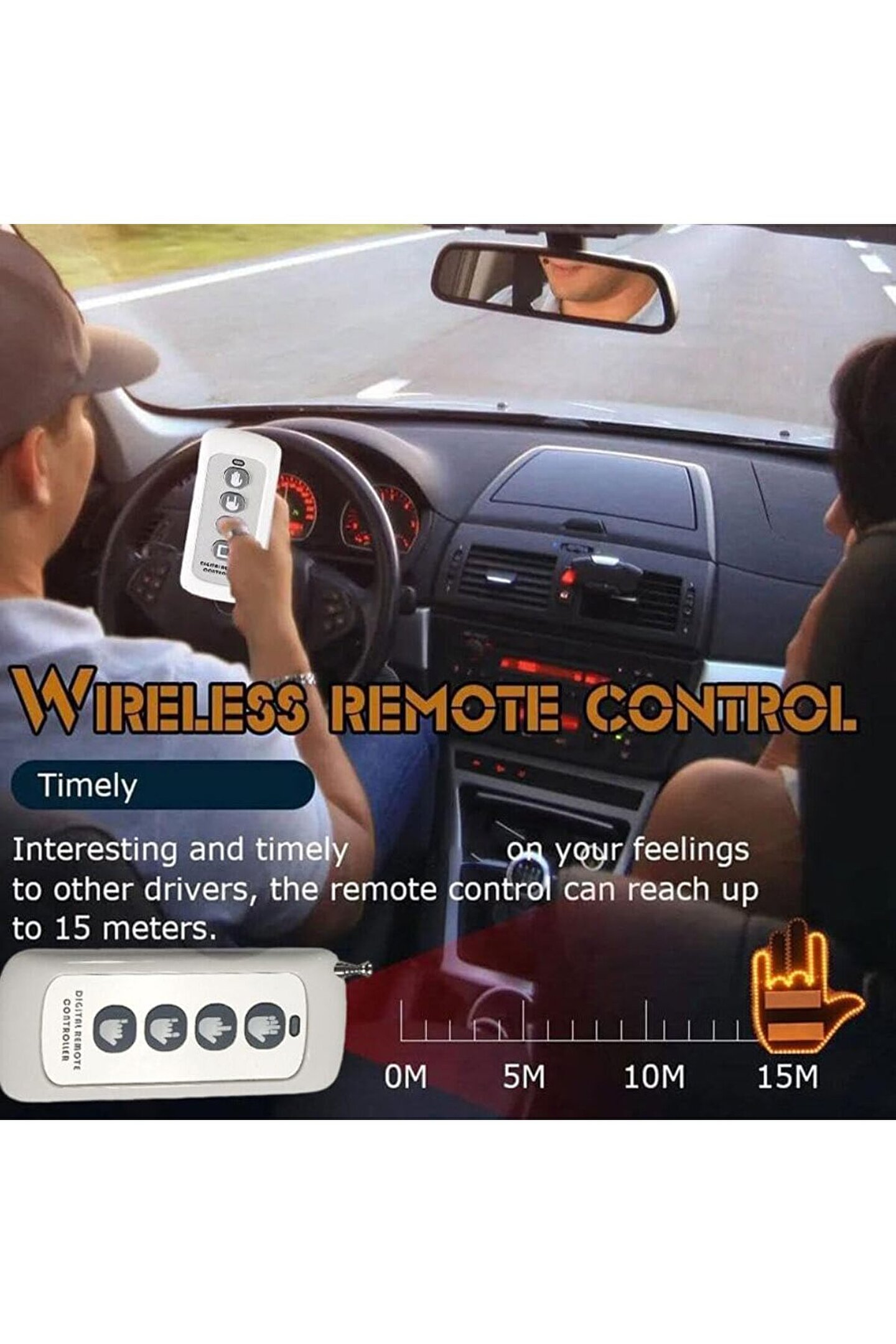 LED EL ARAÇ İÇİ UZAKTAN KUMANDALI 4 MODLU EL İŞARETİ IŞIKLI PARMAK