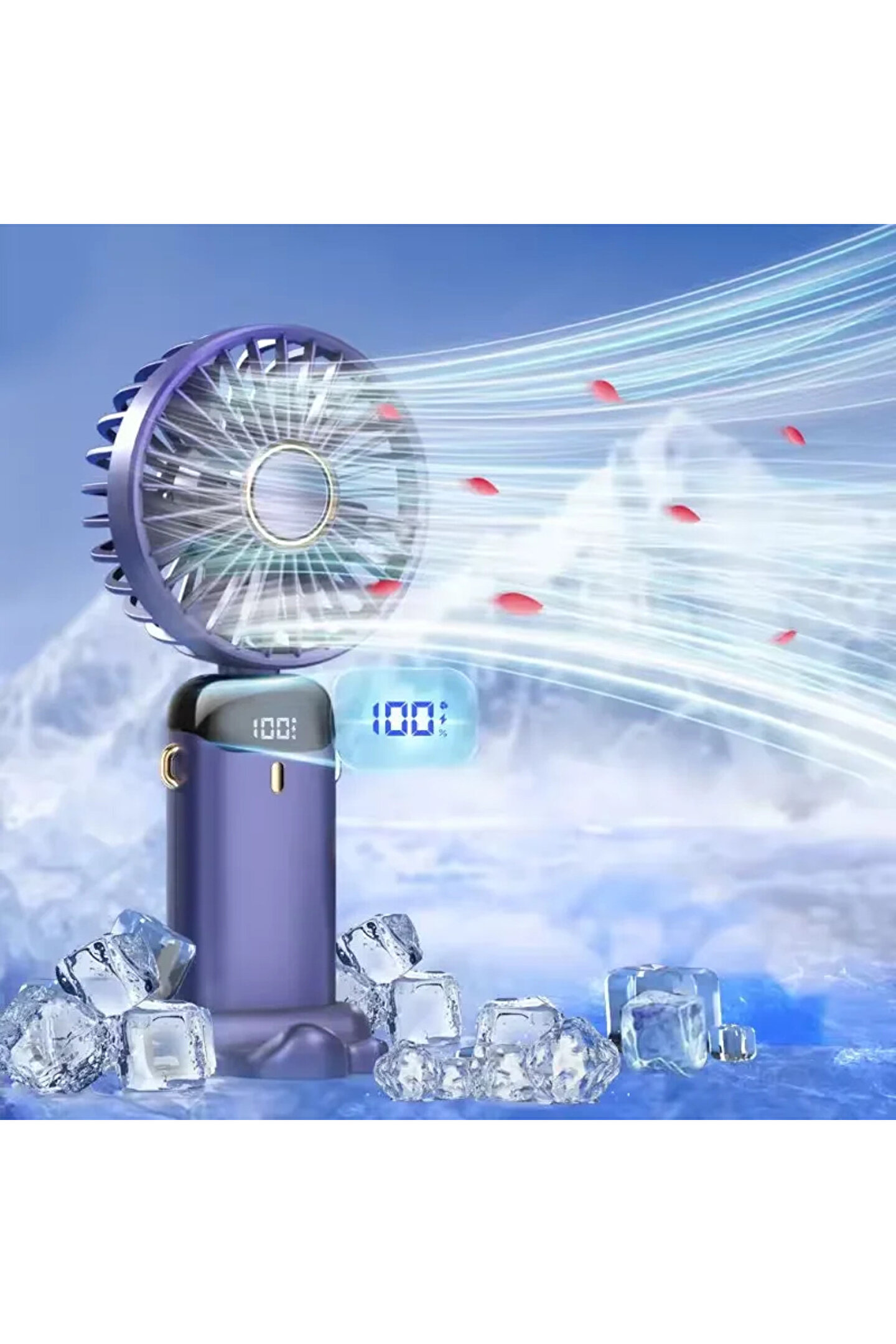 • Mini Klima Led Göstergeli Şarjlı El Fanı Vantilatör 5 Kademeli Hız Ayarı Serinletici Fan