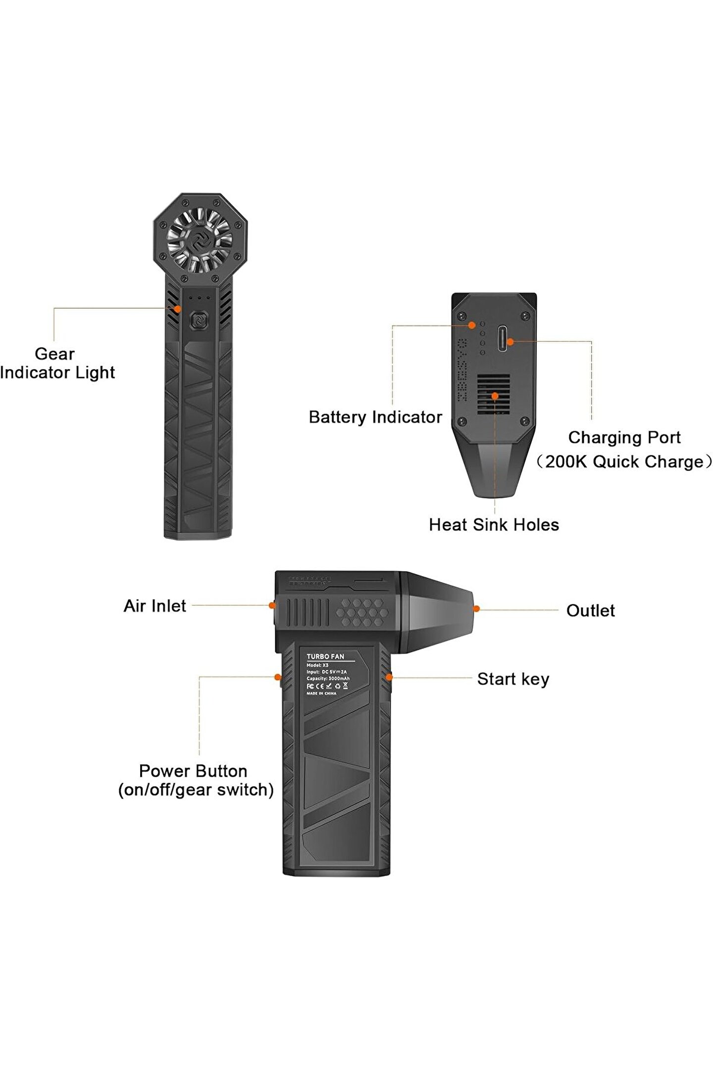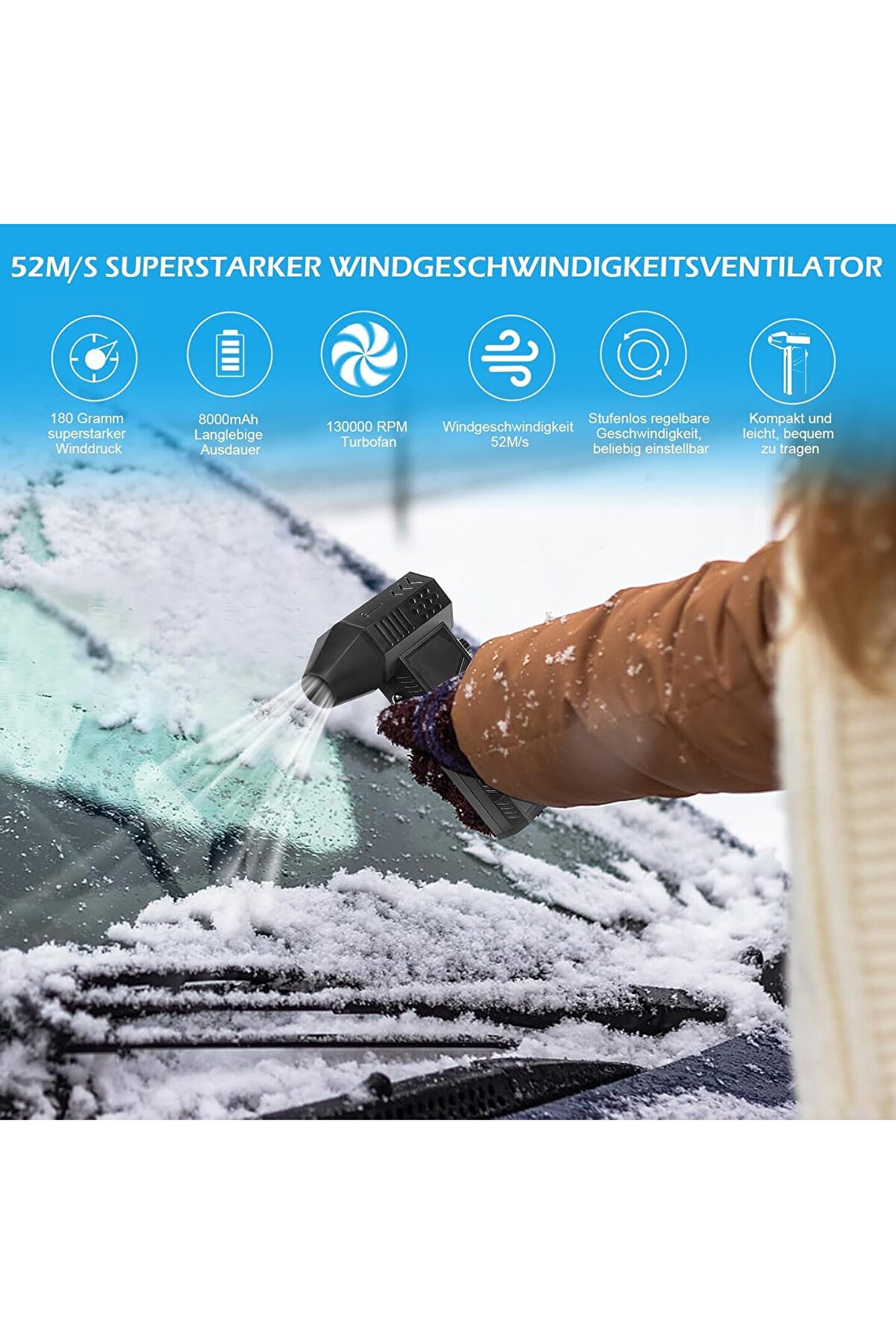 - 180 W güçlü elektrikli toz fanı, 130.000 devir/dakika dönüş hızı, 180 g maksimum rüzgar basıncı, maksimum rüzgar hızı 52 m/sn'nin üzerinde, verimli temizlik.