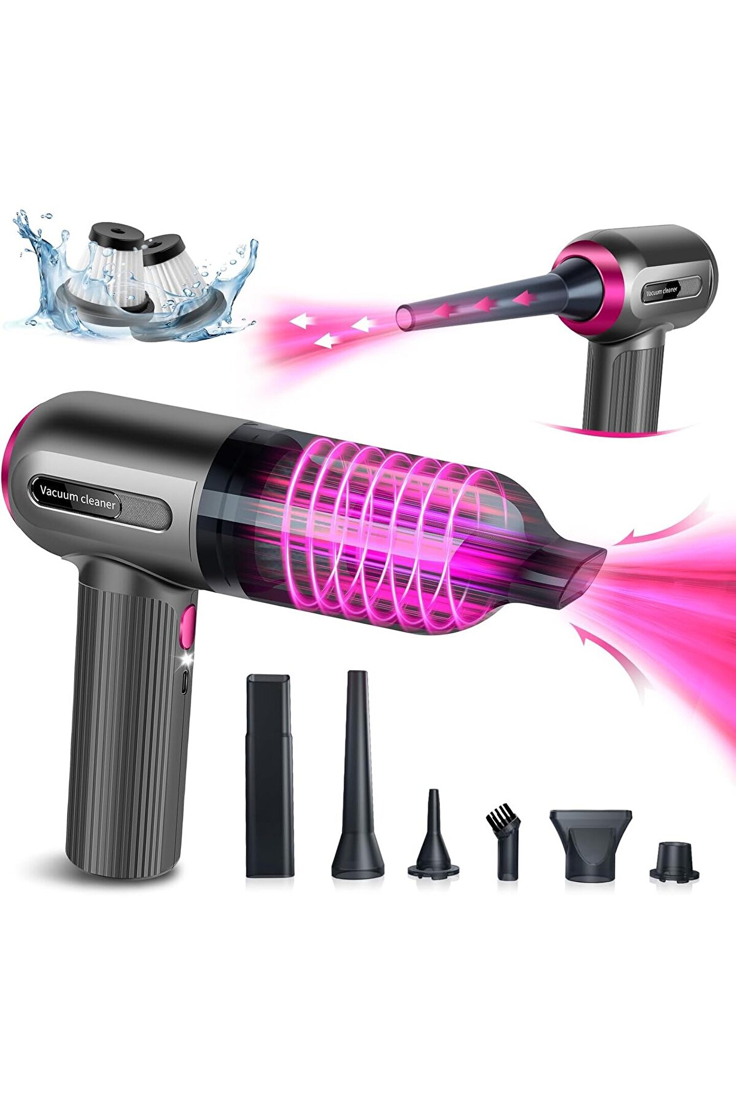 6 temizleme aksesuarıyla bu elektrikli süpürge, eviniz ve arabanız için çok amaçlı bir alete dönüşür. Emme ve üfleme ağızlıklarına ek olarak, şamandıraları şişirmek için bir şişirme ağzı, saç kurutma işlevine sahip bir ağızlık içerir ve hatta saklama torbaları için vakum pompası görevi de görebilir. Temizlik ihtiyacınız ne olursa olsun işinizi kolaylaştıracak bir aksesuar mutlaka vardır.