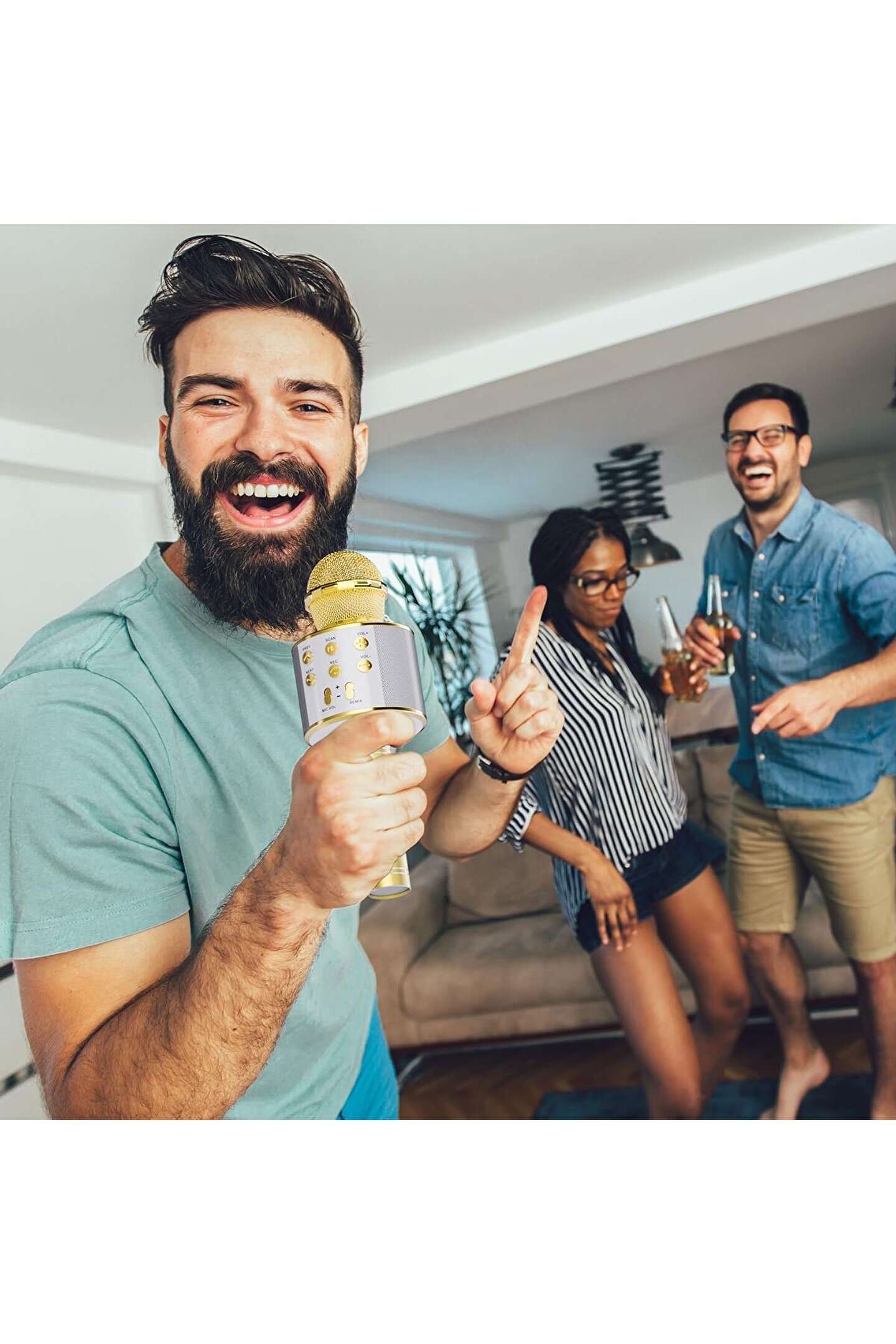 ŞARJLI KABLOSUZ KARAOKE MİKROFON BLUETOOTH HOPARLÖR SES DEĞİŞTİRME ÖZELLİKLİ SD KART USB GİRİŞLİ 5V ŞARJ GİRİŞİ 1200MAH 18650PİL