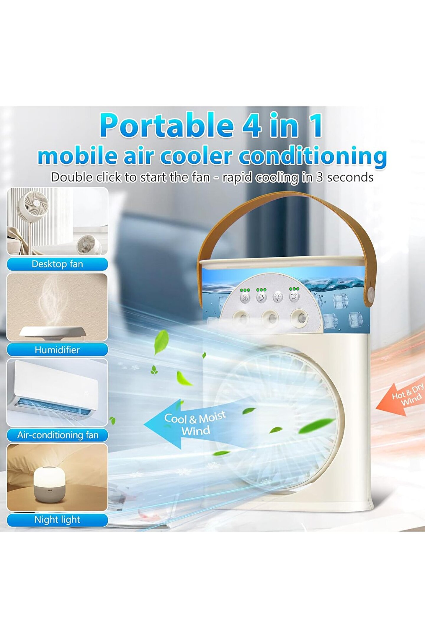 - Masaüstü klima taşınabilir Fan çift sprey ultrasonik atomizasyon 3-Speed dilsiz HAVA SOĞUTUCU gece lambası elektrikli Fan ev için