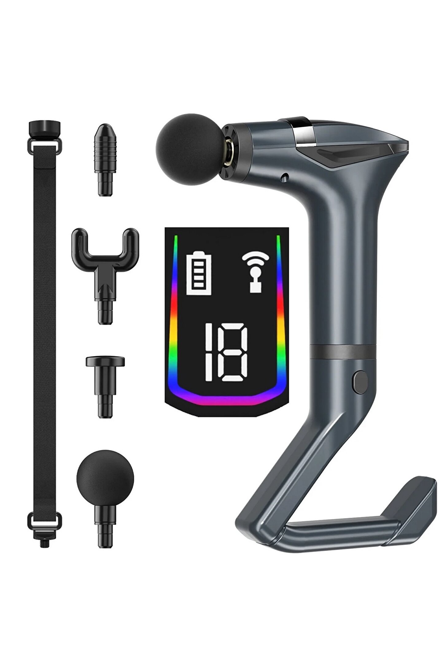<span lang="tr">Uzatma Saplı Tutucu ile 3'ü 1 Arada Masaj Tabancası, Sırt Masajı Kolay Derin Doku Masaj Tabancası, Sporcular İçin Profesyonel Perküsyon Kas Masaj Tabancası, LED Ekranlı Taşınabilir Elektrikli Spor Masaj Aleti</span>
