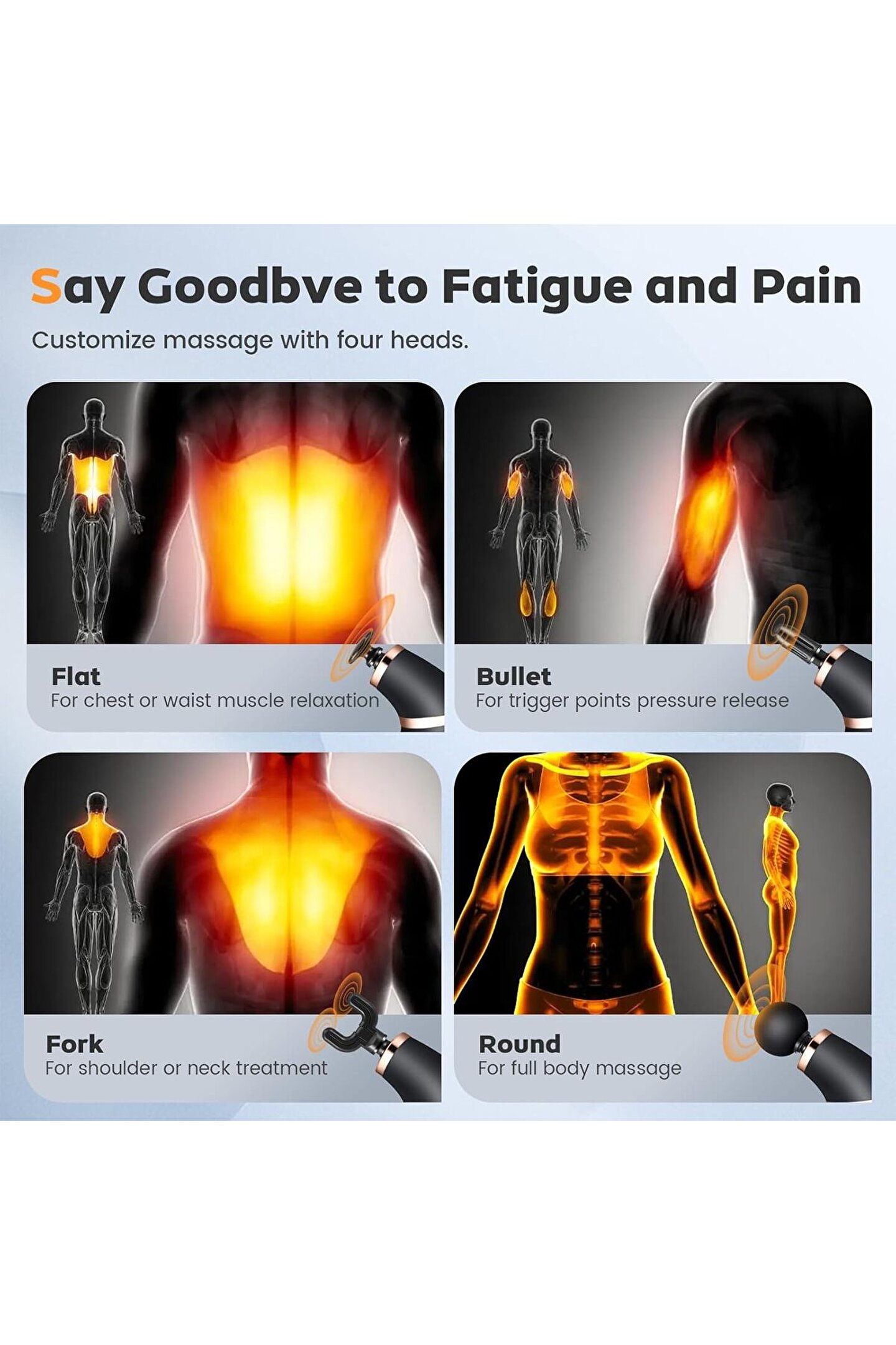 GELİŞTİRİLMİŞ UZATILMIŞ KOL VE HIZLI AĞRI KALDIRILMASI: Wishwell derin doku masaj tabancası, uzatılmış, kolay tutuşlu bir sapa ve omurganızın eğrisini doğal olarak takip edecek şekilde tasarlanmış 120° ergonomik bir eğriye sahiptir. Sırtınız, boynunuz, omuzlarınız ve bacaklarınız gibi ulaşılması zor bölgelere zahmetsizce ulaşabilirsiniz. Ağrıyı hafifletmek için mükemmel olan bu ürün, kasları gevşetmek ve iyileşmeyi kolaylık ve rahatlıkla artırmak isteyen herkes için bir zorunluluktur. LCD Ekran ve 4 Masaj Başlığı: Derin doku masaj tabancamız, modu, hız seviyesini ve pil ömrünü bir bakışta gösteren, okunması kolay bir LCD ekran ile donatılmıştır. Farklı kas gruplarını hedef alan 4 adet değiştirilebilir masaj başlığı içerir ve size kişiselleştirilmiş bir masaj deneyimi sunar. 3 Mod ve 6 Yoğunluk Seviyesi: Masaj tabancamız 3 mod ve 6 masaj yoğunluğu sunar. P1 modunun özelleştirilebilir 6 seviyesi bulunurken, P2 ve P3 modları farklı masaj frekanslarına sahiptir. P1 modunda, yoğunluğu 1. seviyeden 6. seviyeye ayarlamak için güç düğmesine basmanız yeterlidir. P düğmesine basarak modlar arasında zahmetsizce geçiş yapın. Esneklik ve hedeflenen kas rahatlaması için tasarlanan ürün, benzersiz ihtiyaçlarınıza uyum sağlar.