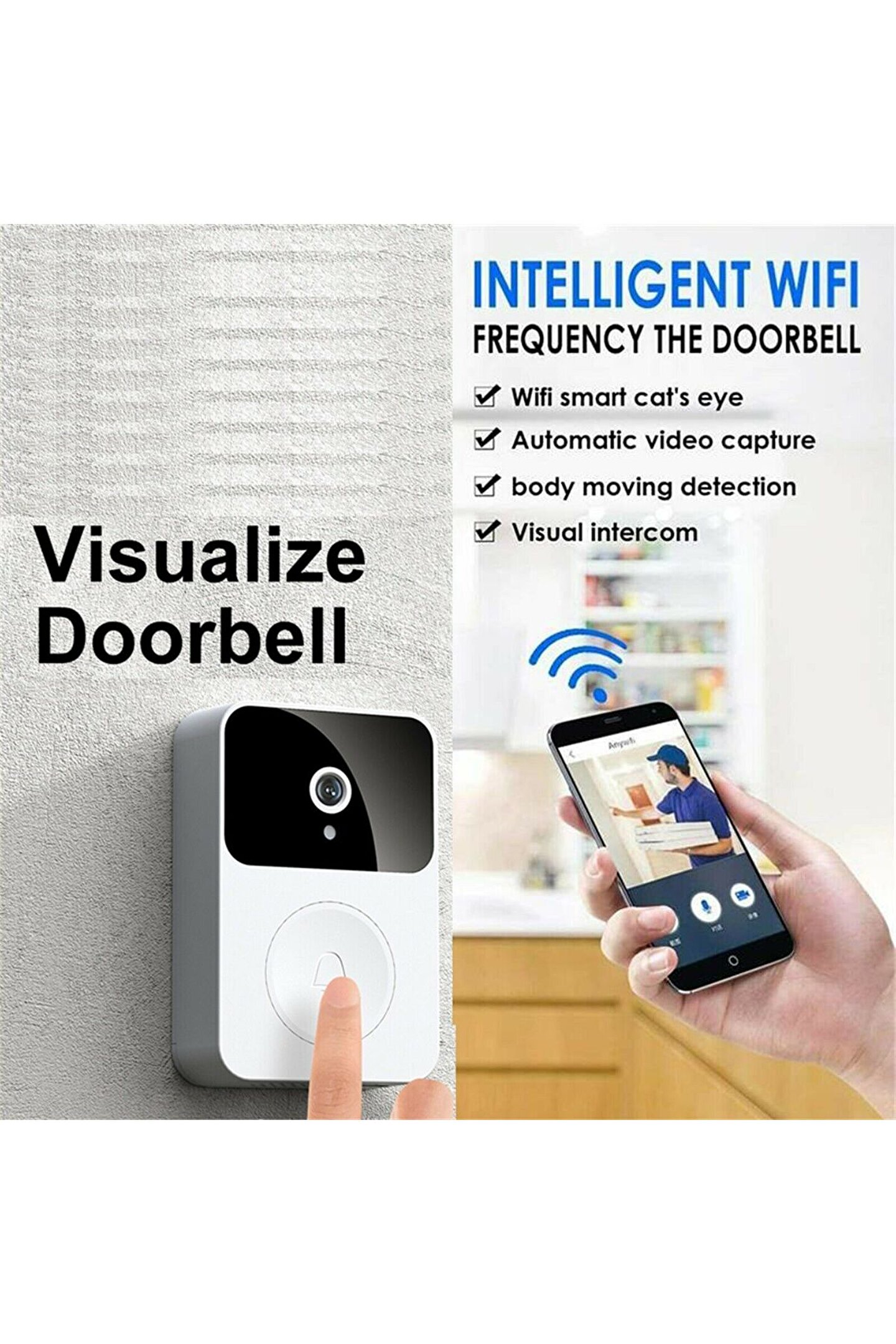 X9 Akıllı Kablosuz Wifi Görüntülü Kapı Zili Su Geçirmez 1080 P HD Video Kapı Zili Kamera Ile HD Kızılötesi Gece Görüş Interkom KameraX9 Akıllı Kablosuz Görüntülü Kapı Zili Akıllı Güvenlik Kamerası Kapı Zili WIFI Kablosuz Uzaktan Ev Video Monitörü Interkom Kamera Tanım:Ürün boyutu: 15.5*6.8*3.5cmÜrün ağırlığı: 85gÜrün Adı: Akıllı Kapı ZiliÜrün malzemesi: ABSÖzellikler:1, Hareket algılamaPIR piroelektrik kızılötesi sensörle yapılandırılmış olan kamera, birinin geçtiğini tespit ettiğinde, size hemen APP aracılığıyla bir uyarı mesajı gönderecektir. 2, Gece görüş fonksiyonuGüçlü gece görüş fonksiyonuna sahip ICR kızılötesi filtreyi kullanma; 166° ultra geniş açılı lens, kapının her ayrıntısını görün 3, gerçek zamanlı interkom fonksiyonu; 1080P tam HDMisafirler ziyaret ettiğinde, evde olmasanız bile, uygulama aracılığıyla gerçek zamanlı ekranı ve gerçek zamanlı sesli interkomu görüntüleyebilirsiniz. 4, çift güç kaynağı, uzun ömürLityum pil güç kaynağı modunu kullanabilir, kablolama gerektirmez, basit kurulum; Aynı zamanda güç adaptörü şarjını da destekleyerek sık sık pil değiştirme sorununu ortadan kaldırır 5, düşük pil istemiUygulamada düşük pil uyarısını ayarlayabilirsiniz, eşik ayar aralığı %10 - %50'dir, güç ayarladığınız eşikten düşük olduğunda size APP aracılığıyla bir hatırlatma gönderir 6, yerel ve bulut depolamaFotoğraf ve video kaydını destekleyin (SD kart gerekmez), 7 günlük ücretsiz bulut depolama hizmeti sağlayın, daha fazla zaman istiyorsanız lütfen satın alın. 7, 30 saniyeye kadar sesli mesaj fonksiyonuEn fazla 3 sesli mesaj, her mesaj en fazla 10 saniye; Mesajları kapı ziline önceden kaydedebilirsiniz. Uygun olmadığınızda ziyaretçilere hızlı yanıt 8, Çoklu kullanıcı işleviCloudedge Uygulaması çok kullanıcılı grup paylaşımını destekler, tüm aile üyeleri gözetim videosunu görüntüleyebilir.Not: Yalnızca yöneticinin menüyü ayarlama hakkı vardır, diğer üyeler yalnızca videoyu görüntüleyebilir ve oynatabilir. 9, zil sesiyle eşleştirilebilirBu zilde 4 zil sesi ve 100dB'e kadar 3 ayarlanabilir ses seviyesi (sessiz mod dahil) bulunur ?Ses değiştirme interkomu, Saniyeler Amca olur?:Garip ziyaretçilerle uğraşmak kolaydır!Ses değiştirme işlevini yükseltin. Evde yalnız olduğunuzda, ses değiştirme interkom fonksiyonunu kullanabilirsiniz Orijinal ses desteği, amca 2 ses modu isteğe bağlıdır Paket içeriği:1 * kapı zili1 * Kullanım Kılavuzu1 * Şarj kablosu
