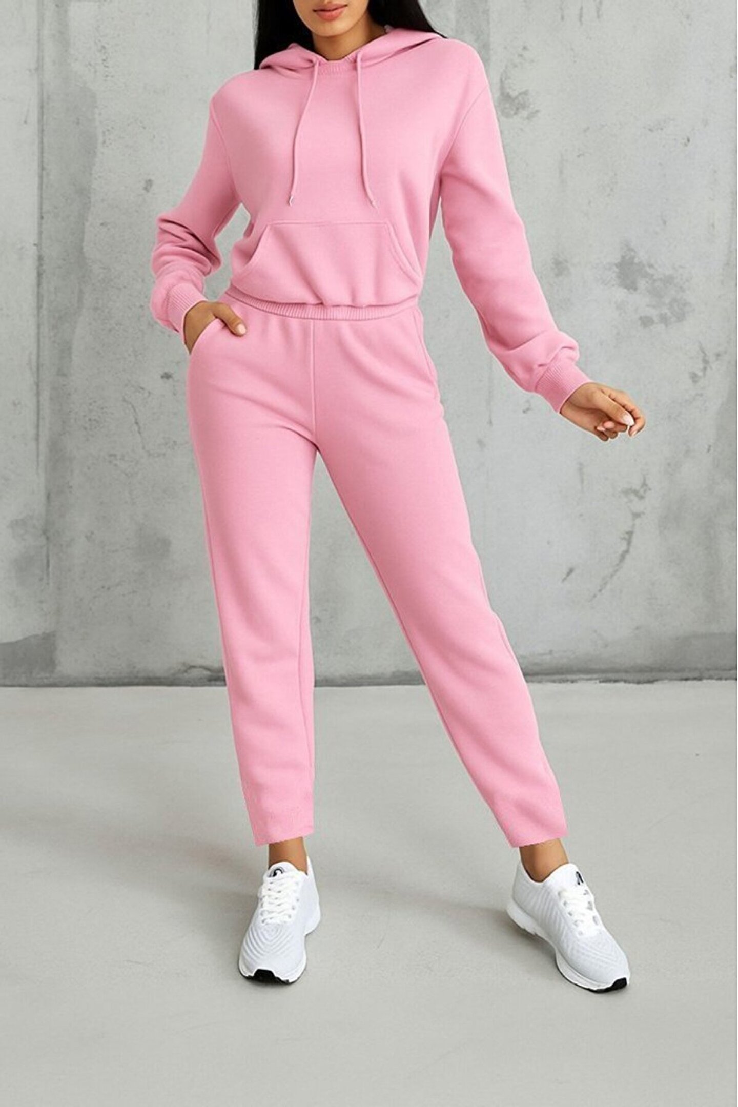Kadın Uzun Kollu Kapşonlu Bağcıklı üç Iplik Bluz Ve Pantolon Ikili Takım