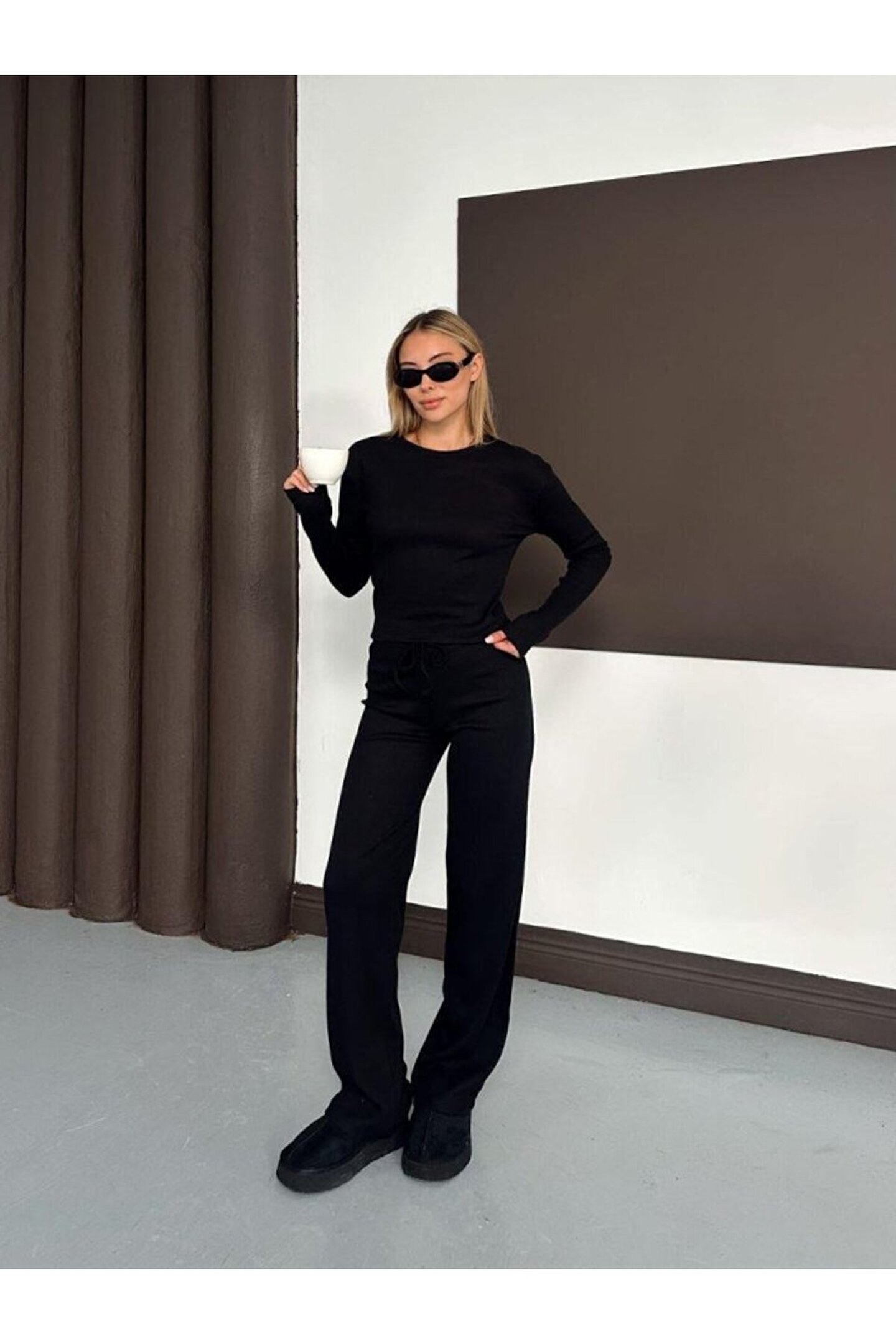 TBL DEKOR eyesof Kadın Bisiklet Yaka Parmak Geçme Detay Uzun Kollu Bluz Ve Pantolon Ikili Takım