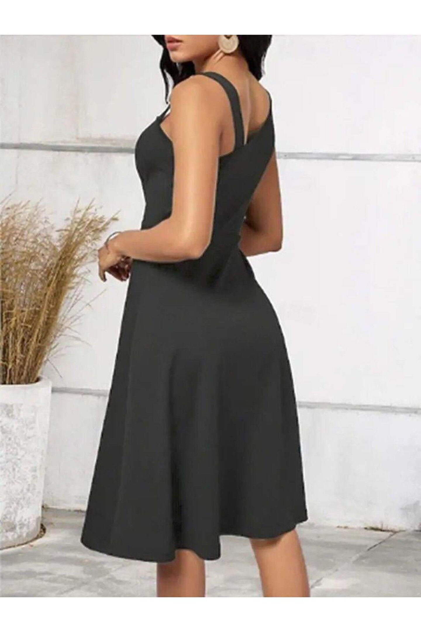 TBL DEKOR Kadın Tek Omuzu şerit Detaylı Kolsuz Yandan Düğme Detaylı Janjan Krep Elbise