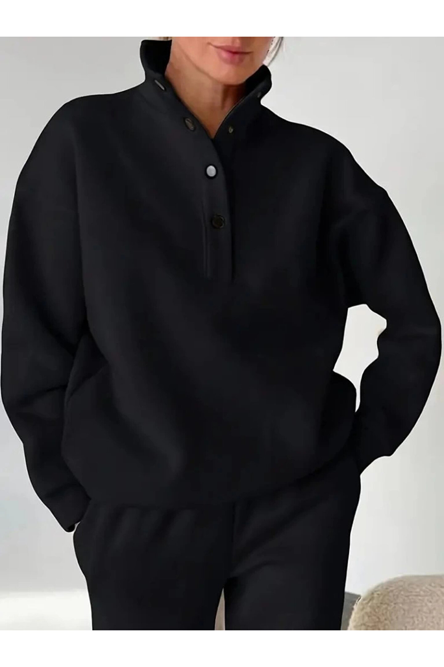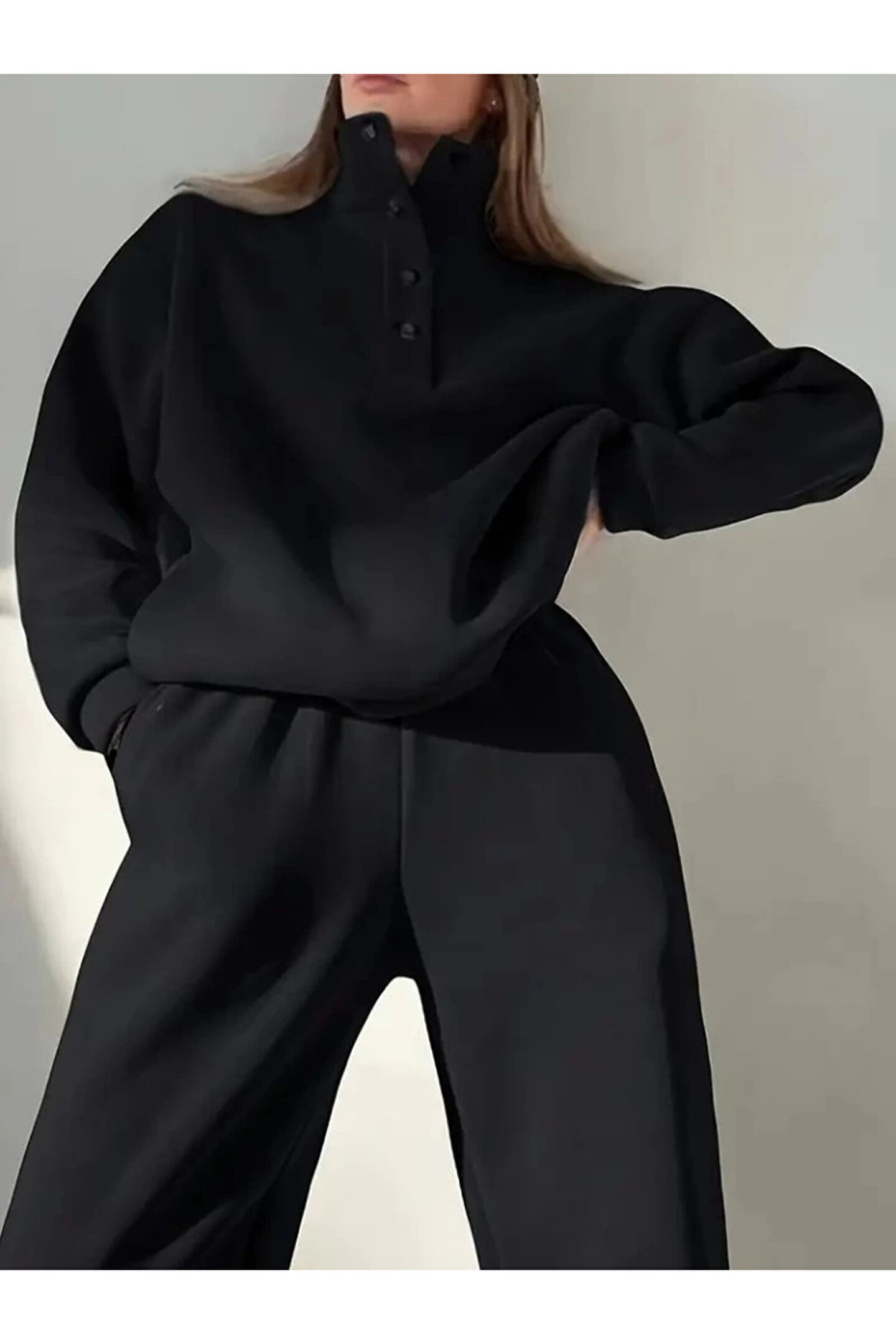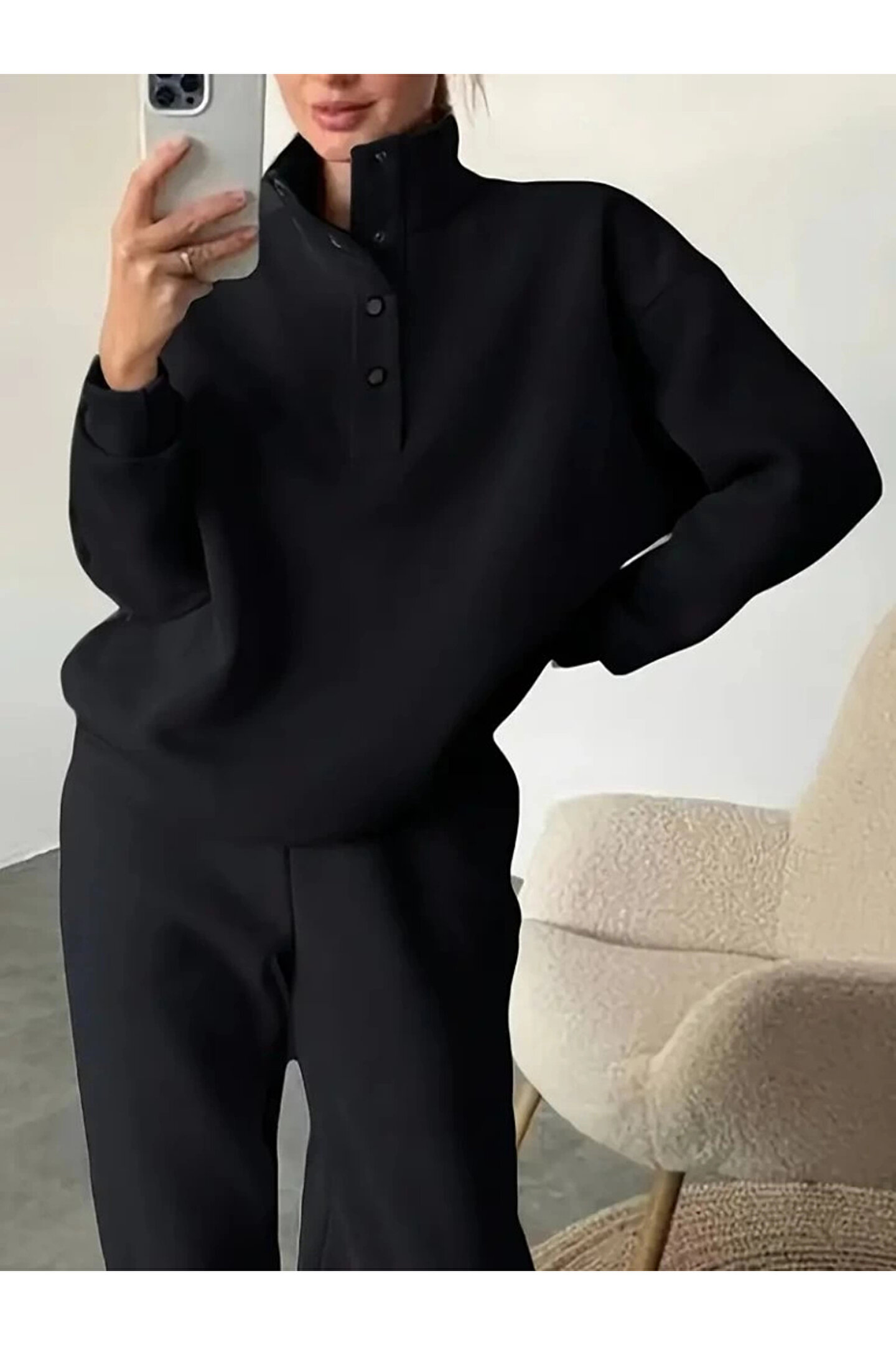 TBL DEKOR Kadın Uzun Kollu Balıkçı Dik Yakalı Düğmeli üç Iplik Bluz Ve Pantolon Ikili Takım