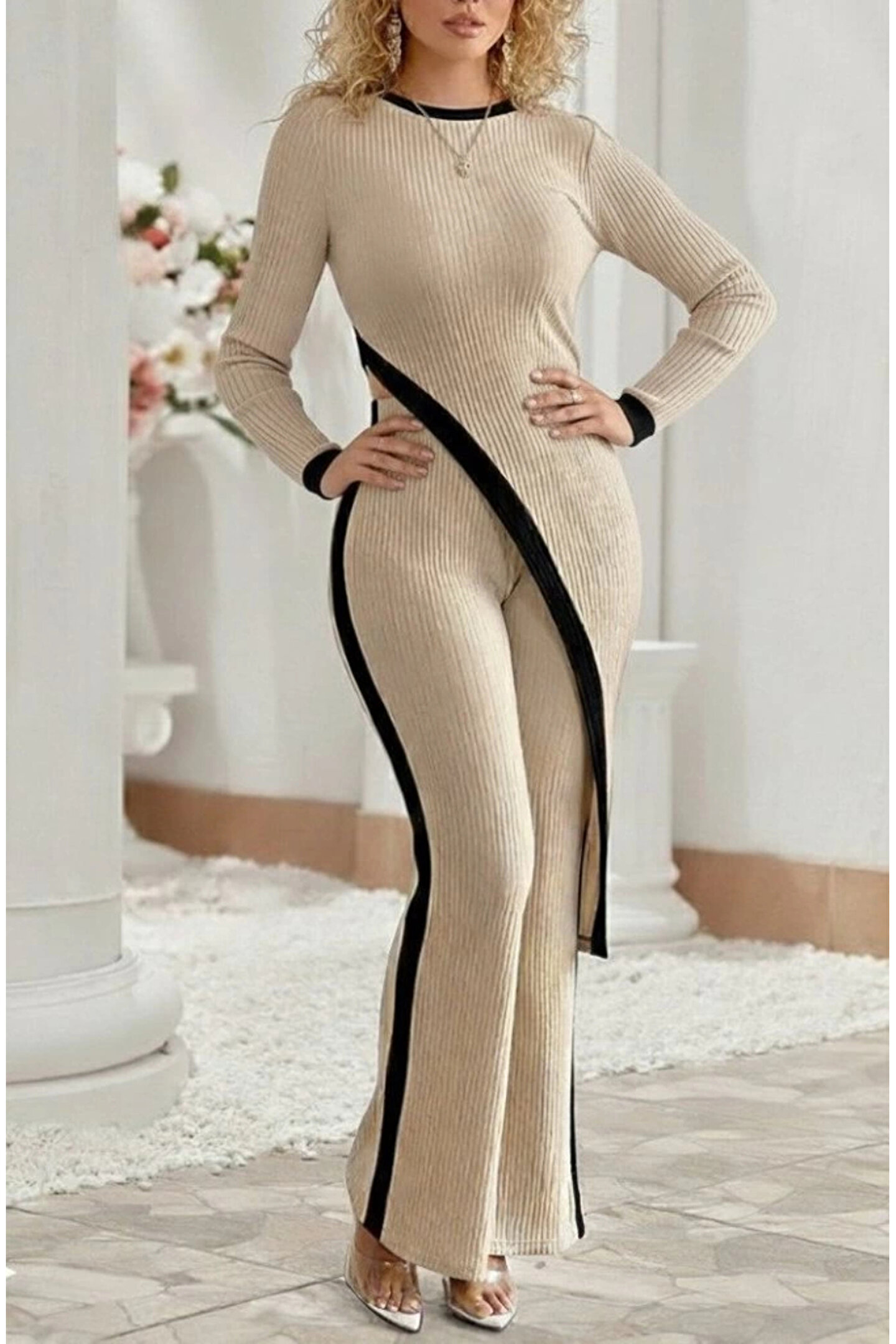 TBL DEKOR Kadın Uzun Kollu Bisiklet Yaka Asimetrik Kesim Bluz şardonlu Kaşkorse Bluz Ve Pantolon Ikili Takım
