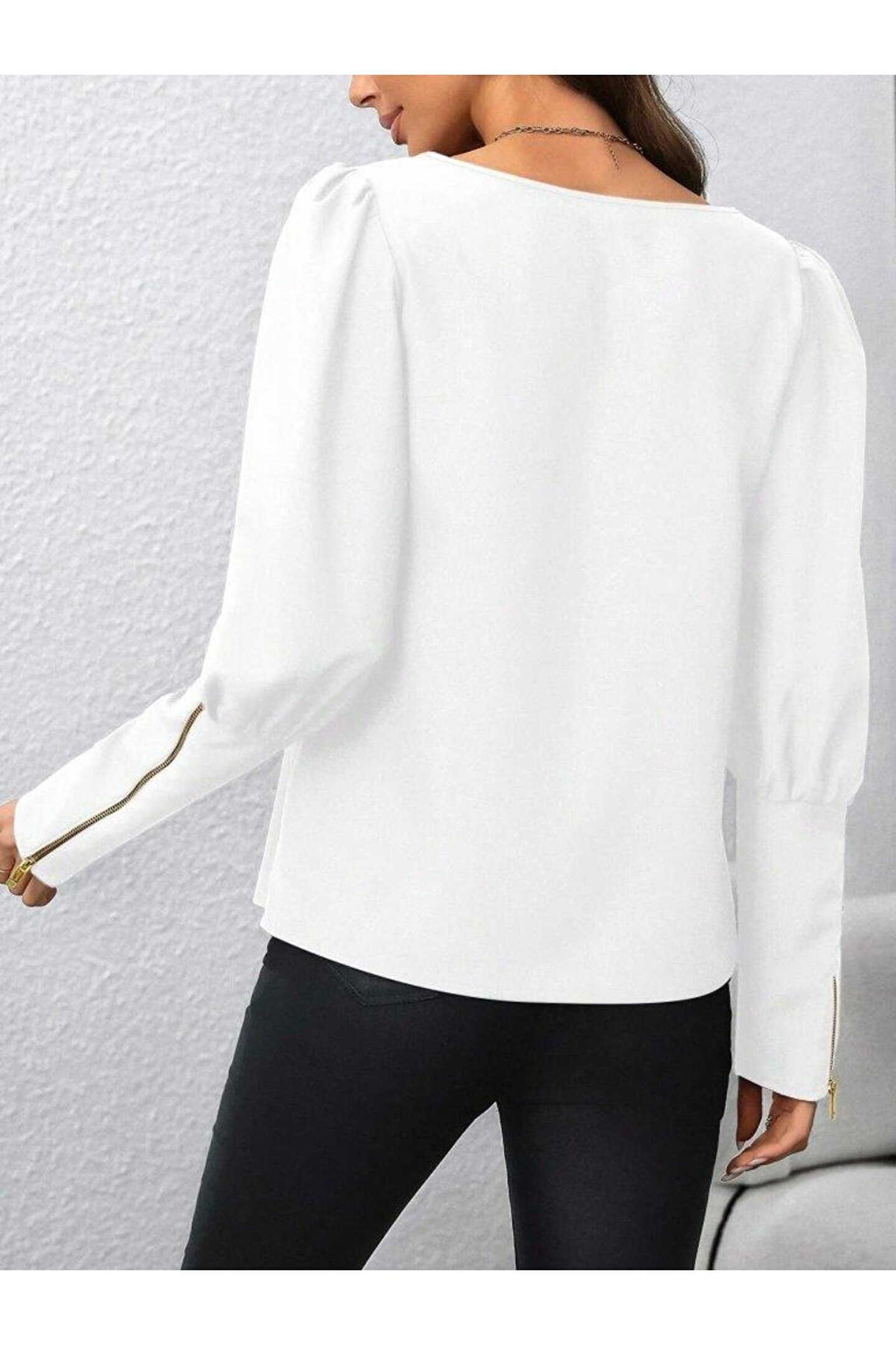 Kadın Uzun Kollu Bisiklet Yaka Fermuar Detaylı Ithal Krep Bluz