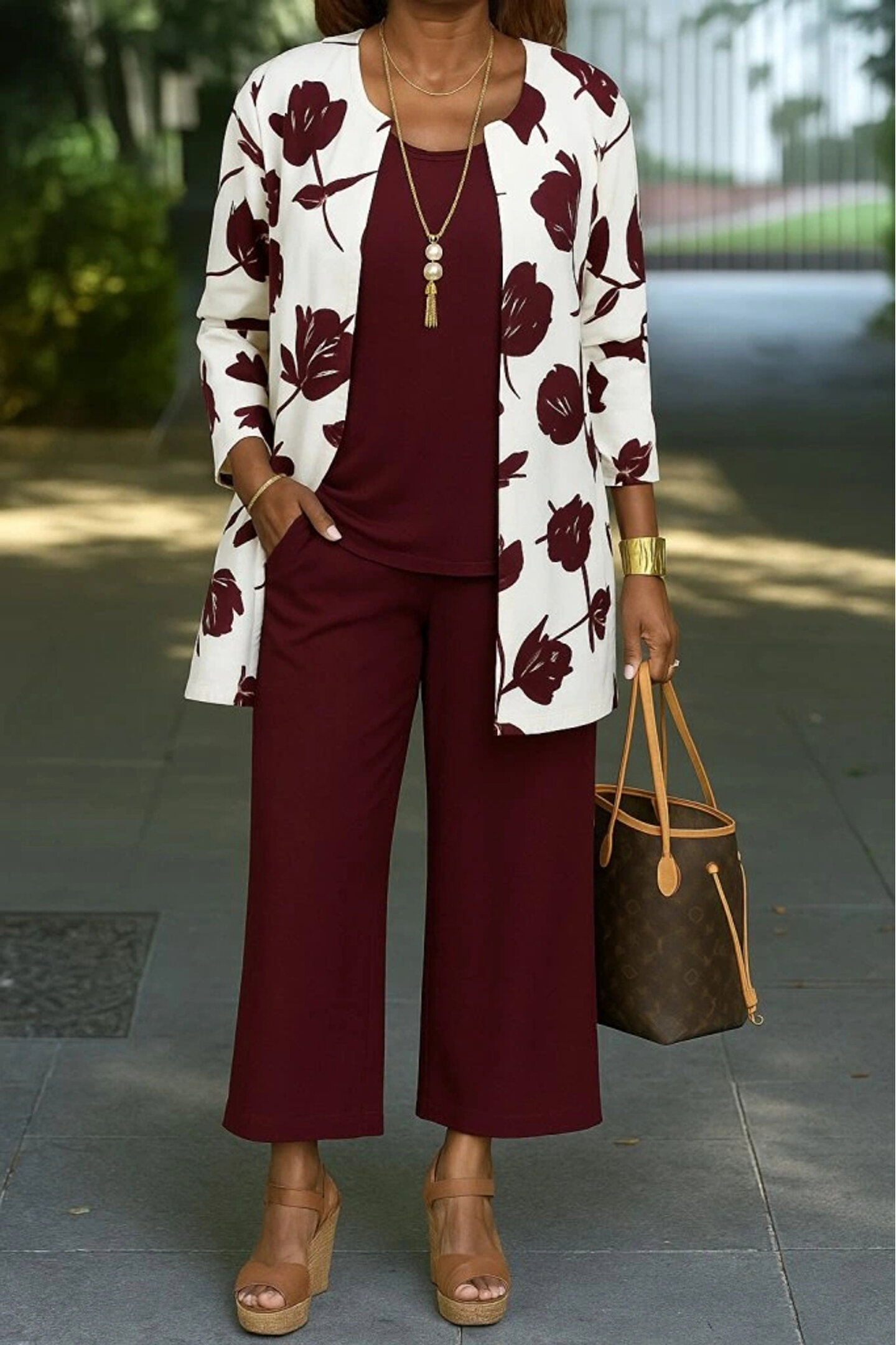 Kadın Uzun Kollu önü Açık Modal Ceket Kolsuz Viskon Iki Iplik Bluz Ve Pantolon üçlü Takım