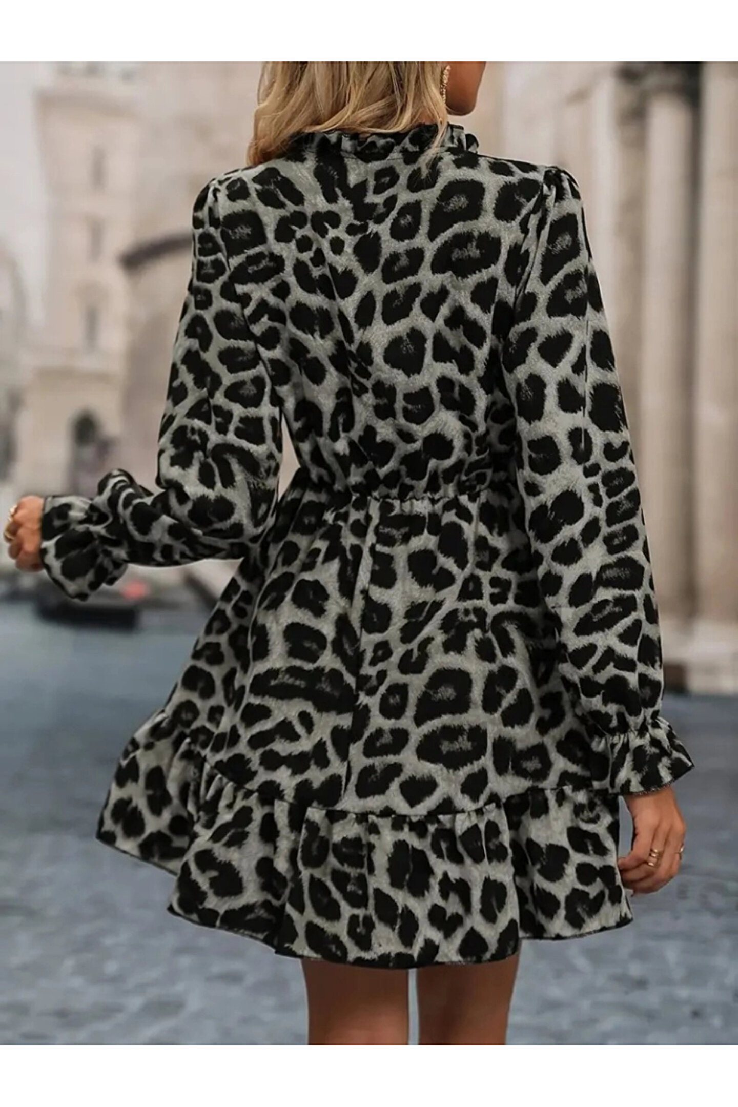 Kadın Uzun Kollu Yakadan Bağlamalı Beli Lastikli şardonlu Dalgıç Elbise