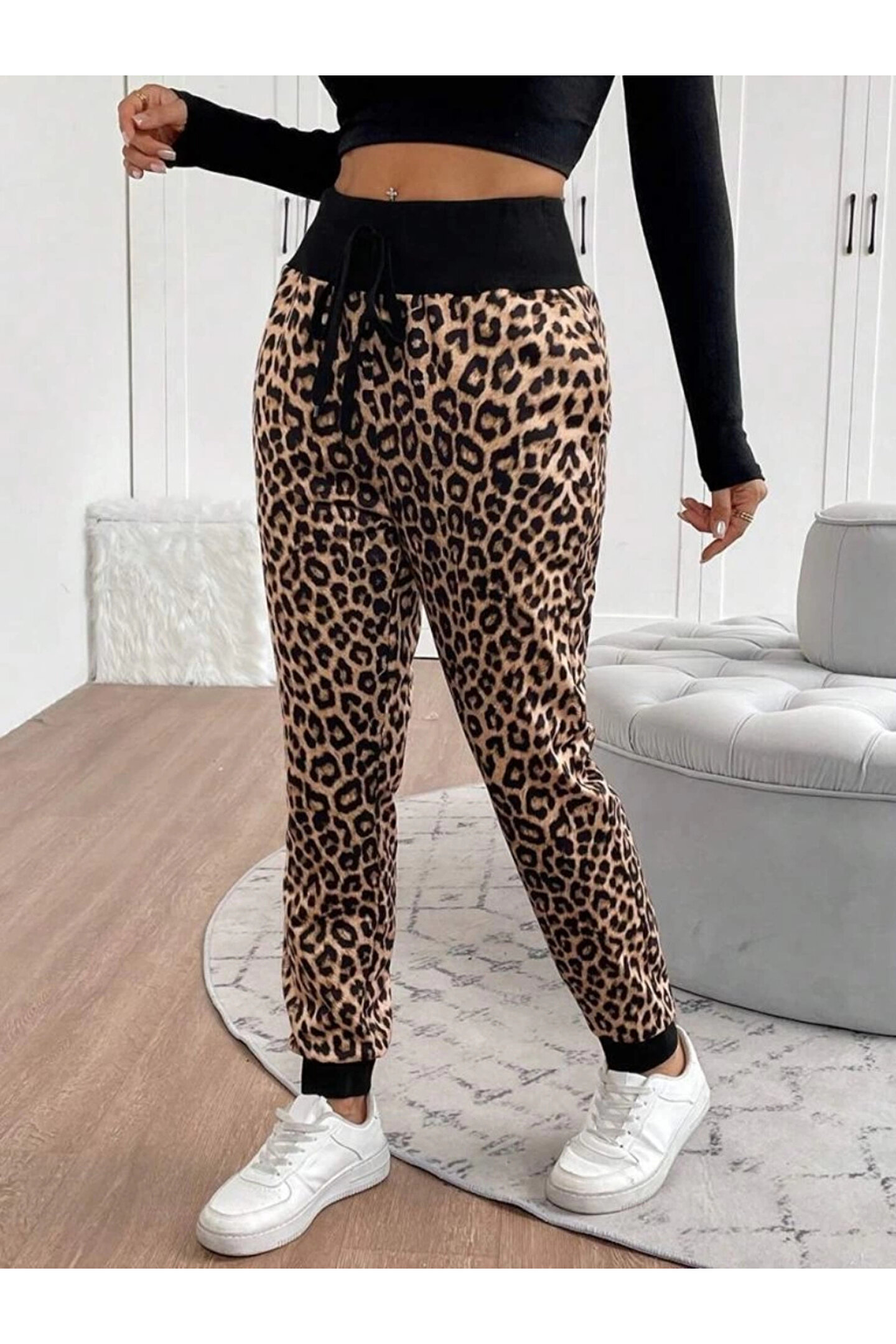 TBL DEKOR Kadın Yüksek Bel Bağcıklı Desenli Iki Iplik Pantolon