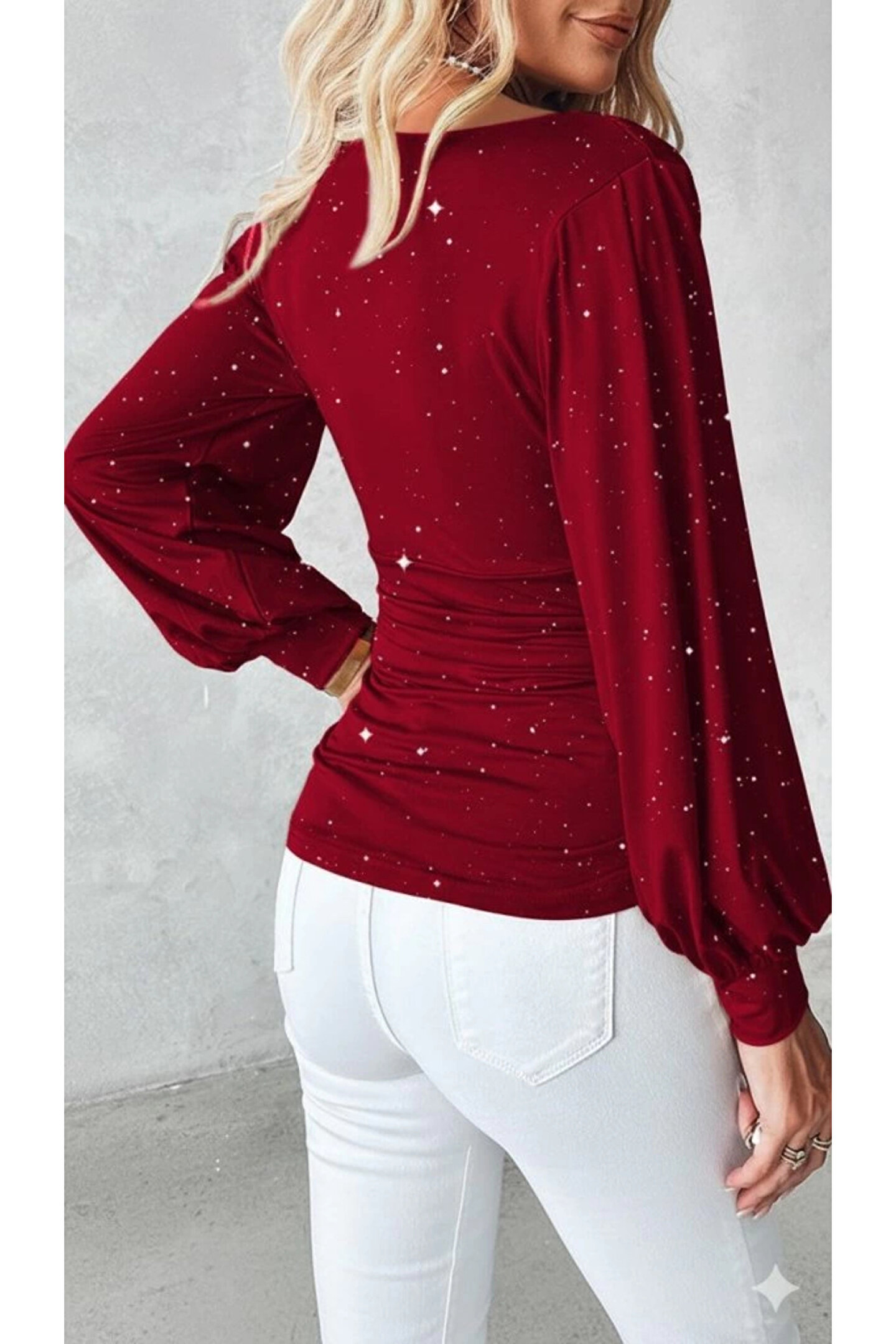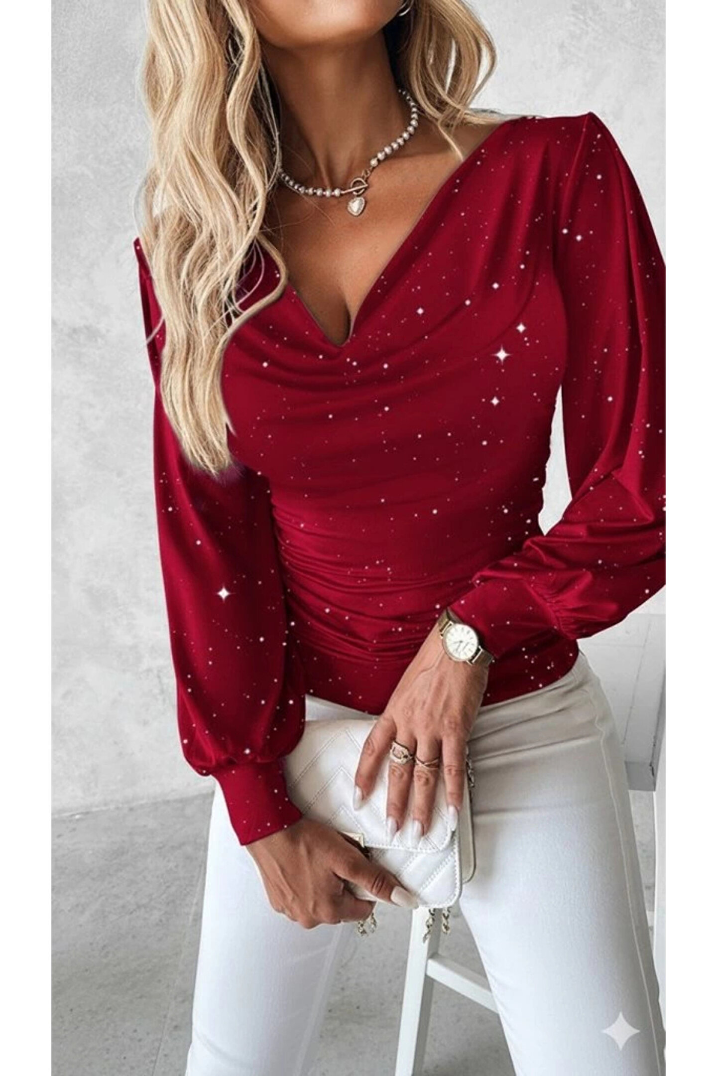 Kadın Uzun Kollu Degaje Yaka Taşlı Sandy Bluz