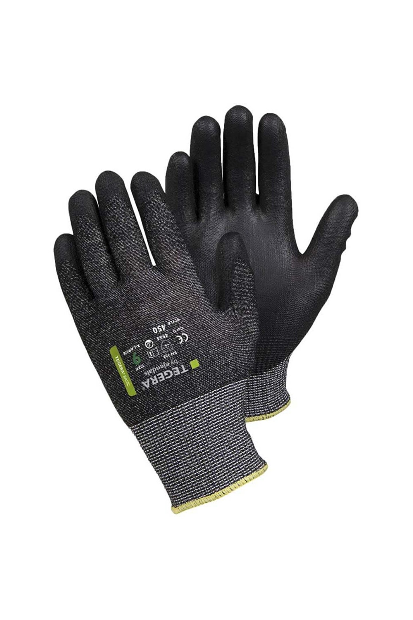 TEGERA İŞ ELDİVENİ 450 ÖZELLİKLER EN 388:2003 seviye 5 seviyesinde kesilmeye karşı dayanıklı, EN 388:2016 seviye C seviyesinde kesilmeye karşı dayanıklı BİRİNCİL KORUMA Kesilme yaralanmaları TEMEL KULLANIM ORTAMLARI Kesilme riski taşıyan ortamlar, kirli ortamlar, sert ortamlar TEMEL KULLANIM ALANLARI Kurulum, denetim çalışmaları, mühendislik TEMEL KULLANIM ENDÜSTRİLERİ Machinery and equipment, MRO, automotive İŞ TİPİ Hafif seviye Eldiven Tipi : Kesilmeye karşı dayanıklı eldivenler Kategori : Cat; II Beden (AB) : 6, 7, 8, 9, 10, 11 Malzeme : Manşet Malzemesi; Kumaş Astar Malzemesi : İ CRF® Teknolojisi, fiberglas iplik, naylon, poliester, spandeks, 13 gg Daldırma Malzemesi : Nitril; Avuç içi daldırmalı Kalınlık :; İç :; El Becerisi : 5 Tutuş Deseni : Köpük tutuş deseni; Örgü bilek manşeti Uzunluk Aralığı : 220; 270mm Renk : Siyah Karton Başına Kutu :; Kutu Başına Adet :; Paket/Karton Başına Çift : 12/120 AQL :; Görüntü : Euroslot yuvalı çanta Malzeme Spesifikasyonu : Nitril 30%, HPPE 60%, fiberglas iplik 10% Dış Malzeme Spesifikasyonu :; İç Malzeme Spesifikasyonu :; Antibakteriyel / Biyosidal İşlemi :;