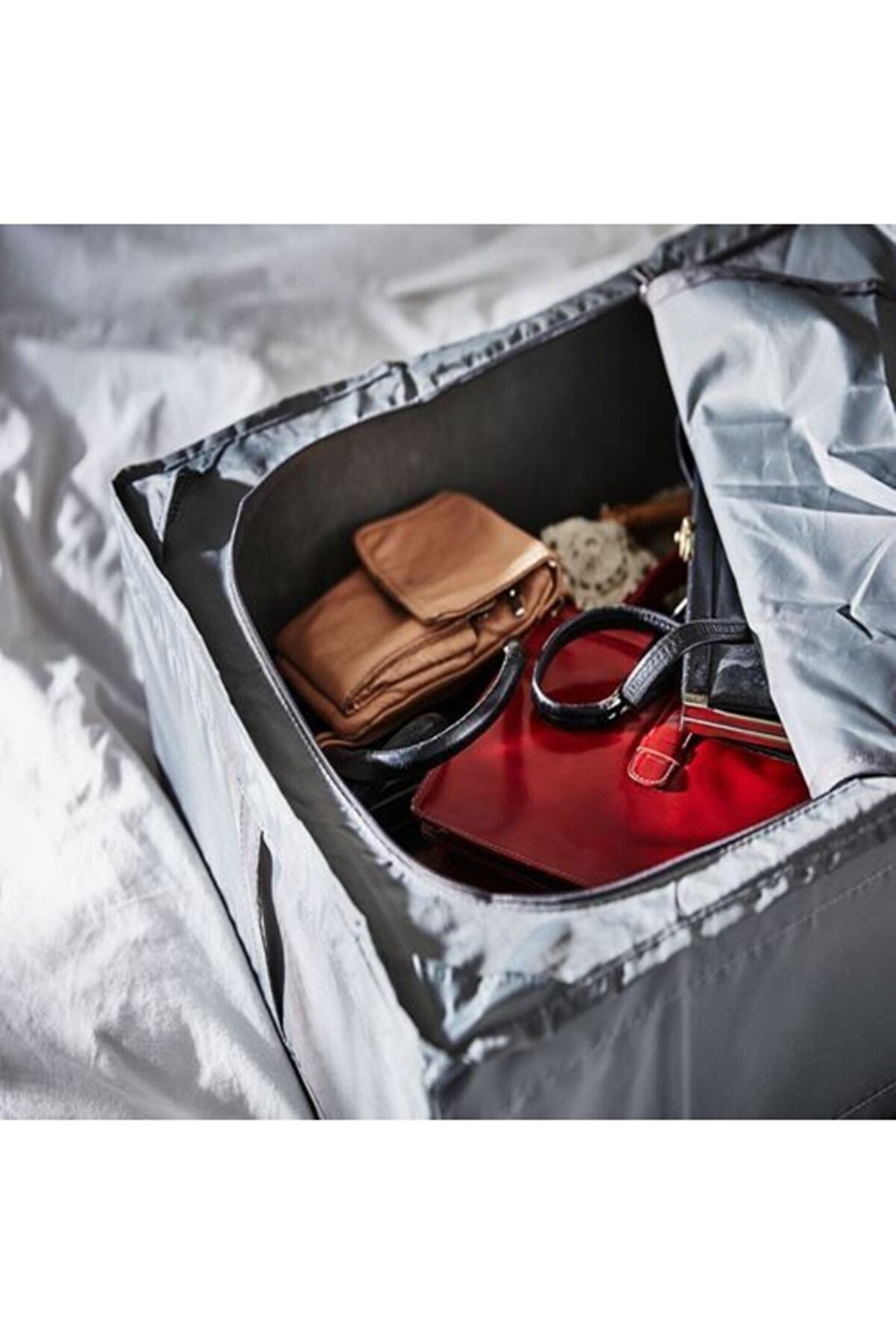 Ebatlar Genişlik: 69 cm Derinlik: 55 cm Yükseklik: 19 cm Kumaş geri dönüştürülmüş polyesterden yapılmıştır. ; Atığı kaynak olarak kullanmak bizi daha sürdürülebilir geleceğe bir adım daha yaklaştırıyor. ; Saklama kutusunu yatağın altına yerleştirerek yastıklar, nevresim ve yatak takımları için ekstra bir alan yaratabilirsiniz. ; Saklama kutusundaki kulp sayesinde kolayca çekilir. ; Malzeme Kumaş:%100 polyester Panel:Polipropilen plastik;