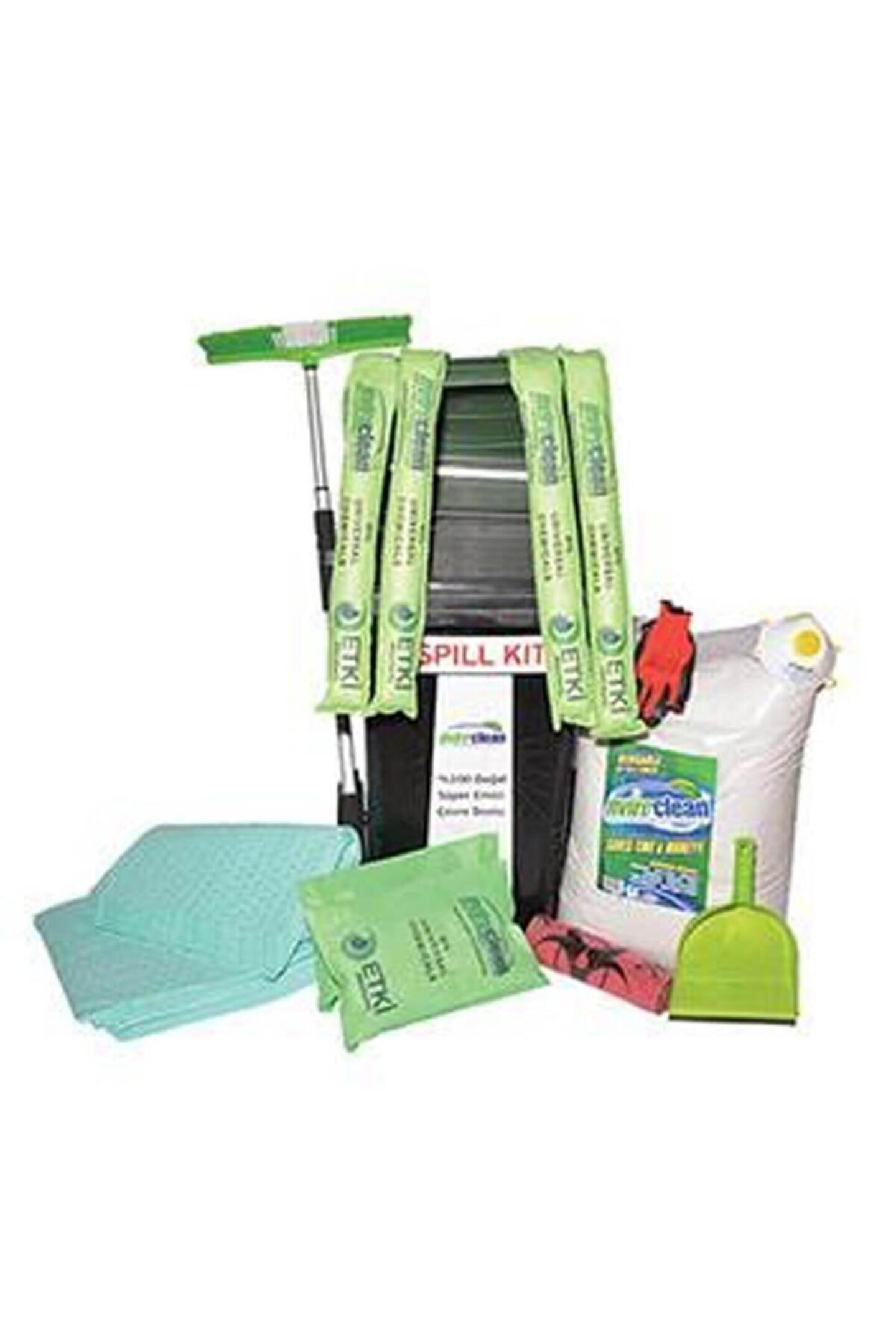 NVIROCLEAN GAMA DÖKÜNTÜ KİTİ 1 Adet Nviroclean toz ürünü 25 Adet Kimyasal Emici Ped (40 x 50 cm) 4 Adet Kimyasal Emici Sosis (8 x 120 cm) 2 Adet Kimyasal Emici Yastık (40 x 25 cm) 1 Adet Tekerlekli, Elekli Taşıma Kovası Temizlik Seti: Teleskopik Saplı Fırça, Faraş, Eldiven, Toz Maskesi, Gözlük 5 Adet Atık Torbası KOD KOLİ ADEDİ EMİŞ KAPASİTESİ KT; GAMA 1 110 Lt;