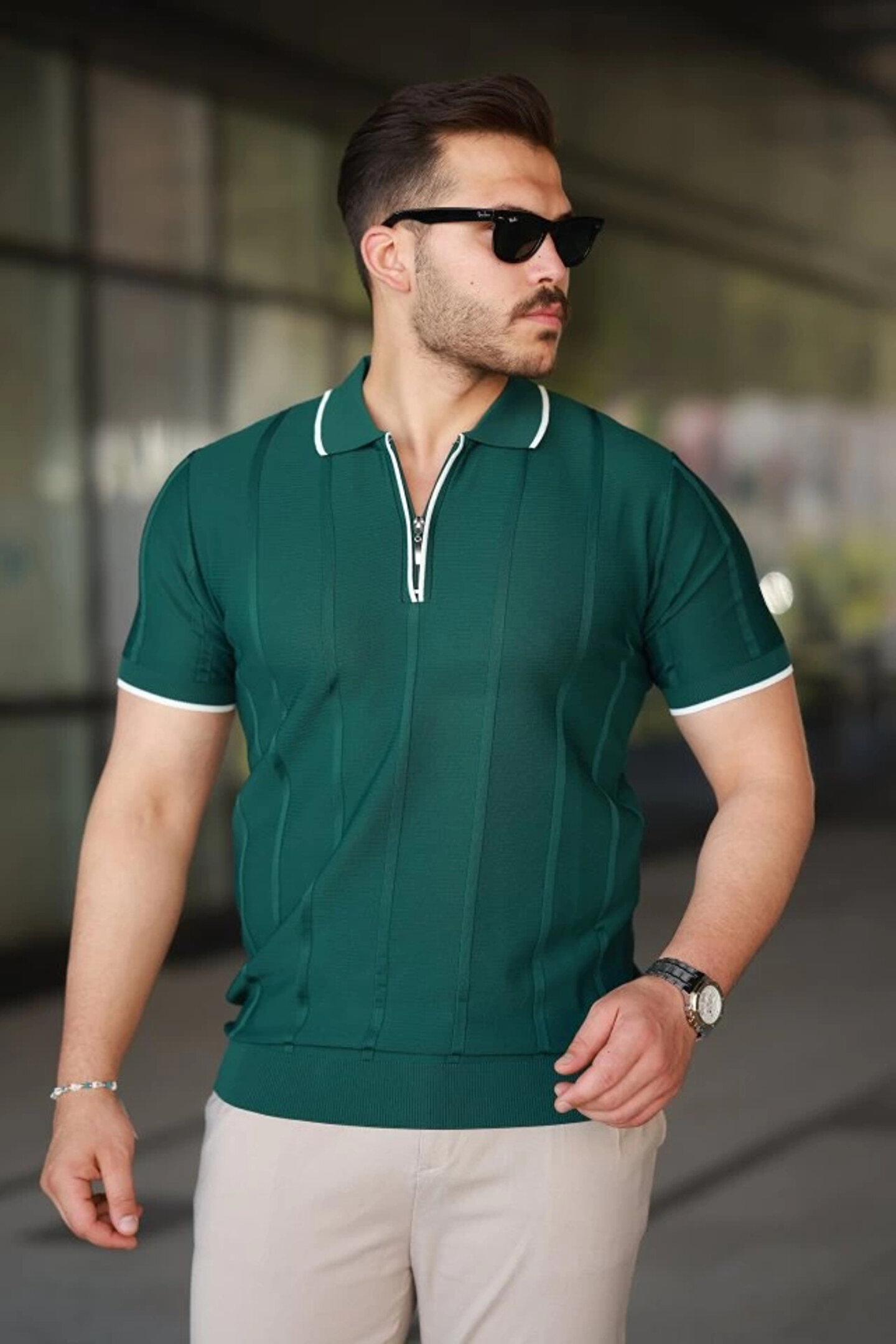 MDB Erkek Dikey Kabartmalı Örgü Dokulu Fermuar Yakalı Tişört
