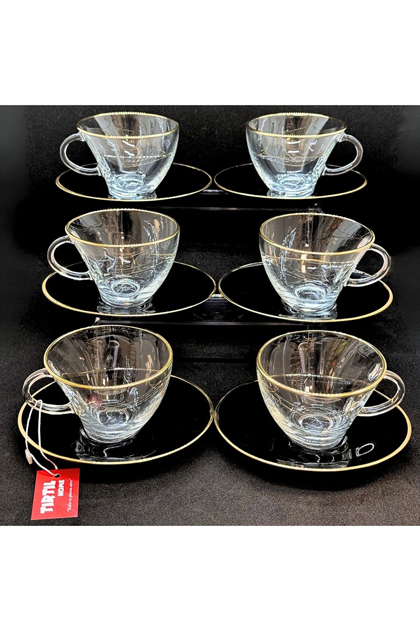12 Parça 6 Kişilik Metalik Altın Siyah Çay Takımı