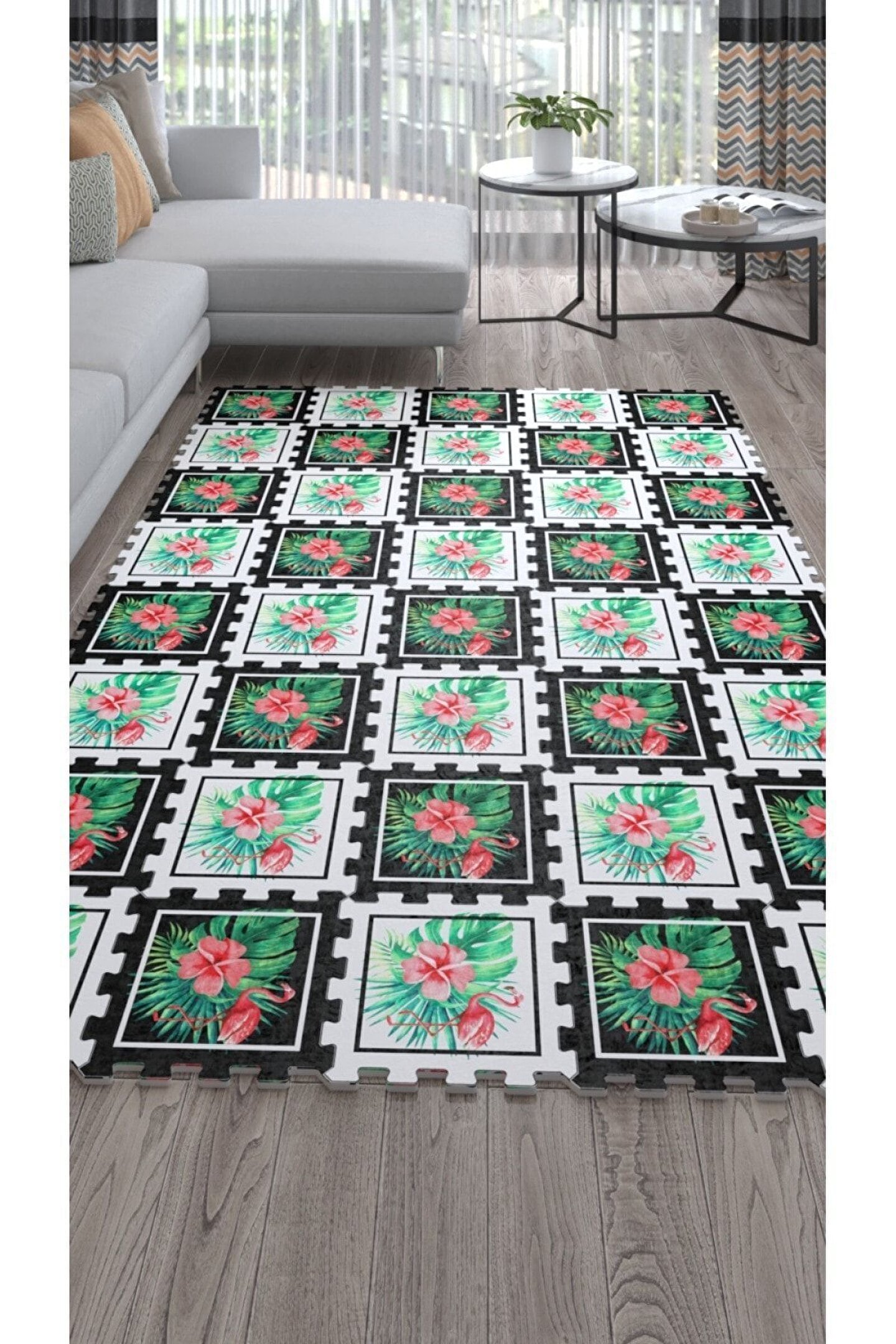 Tokyo Halı Çiçek Desenli Yıkanabilir Dekoratif Salon Halısı Ths9 | Yapboz Halı | Puzzle Halı