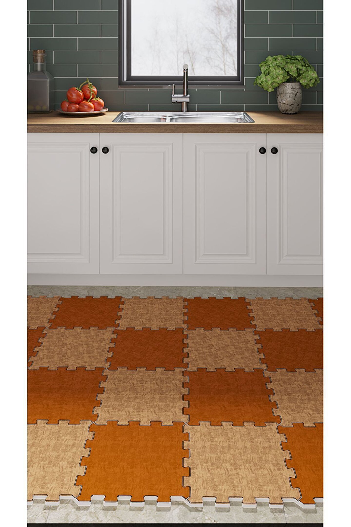 Tokyo Halı Desenli Yıkanabilir Yumuşak Mutfak Halısı Thm37 | Yapboz Halı | Puzzle Halı