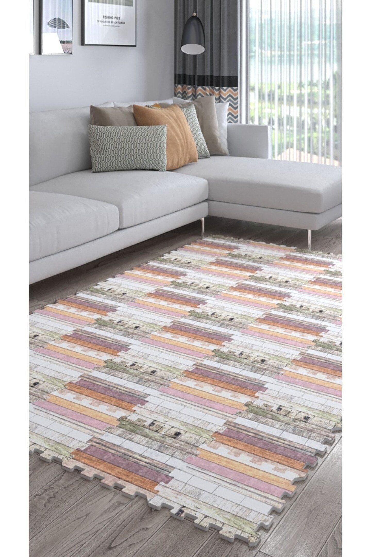 Tokyo Halı Döşeme Desenli Renkli Salon Halısı Ths18a | Yapboz Halı | Puzzle Halı