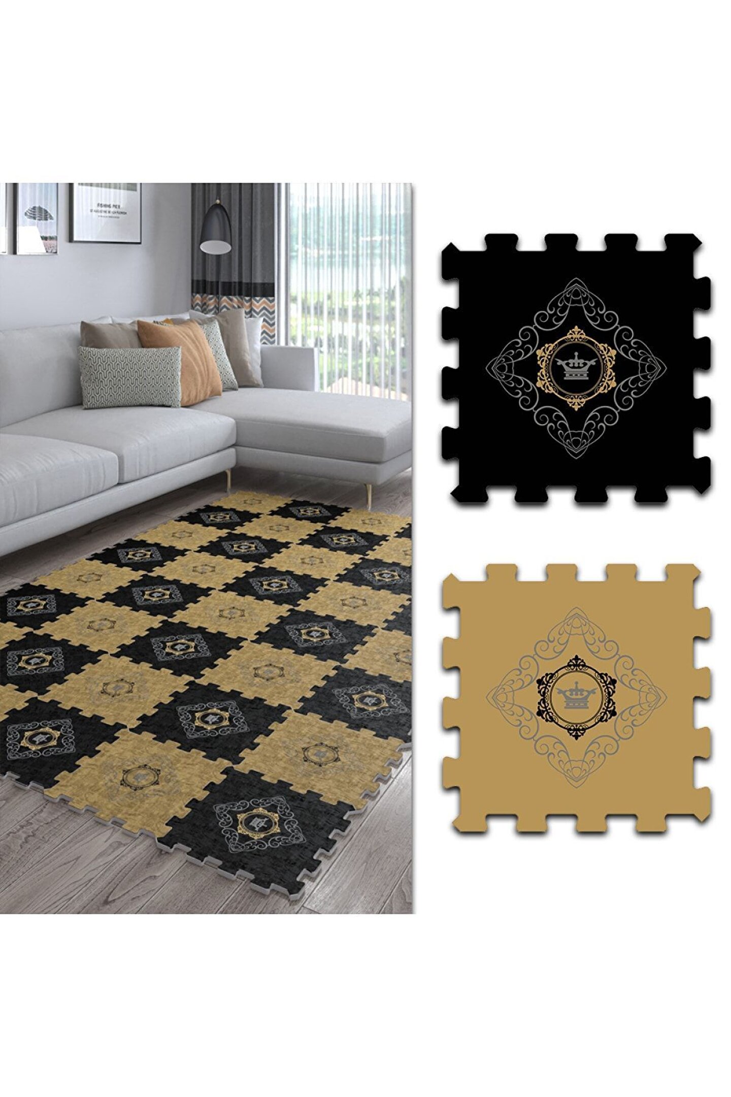 Tokyo Halı Kahverengi Siyah Dekoratif Salon Halısı Ths25 | Yapboz Halı | Puzzle Halı