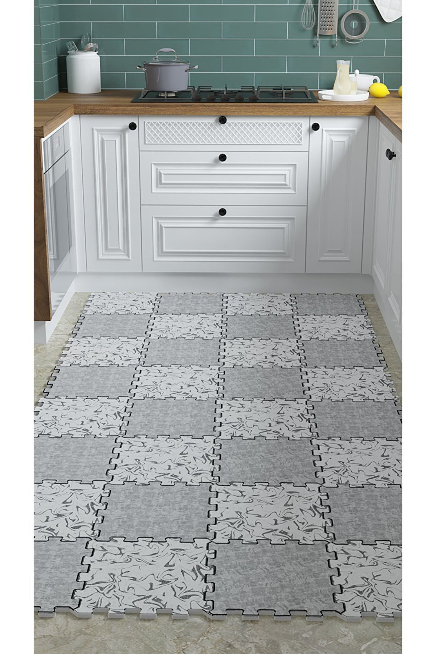 Tokyo Halı Kolay Temizlenen Mermer Desenli Mutfak Halısı Thm32 | Yapboz Halı | Puzzle Halı