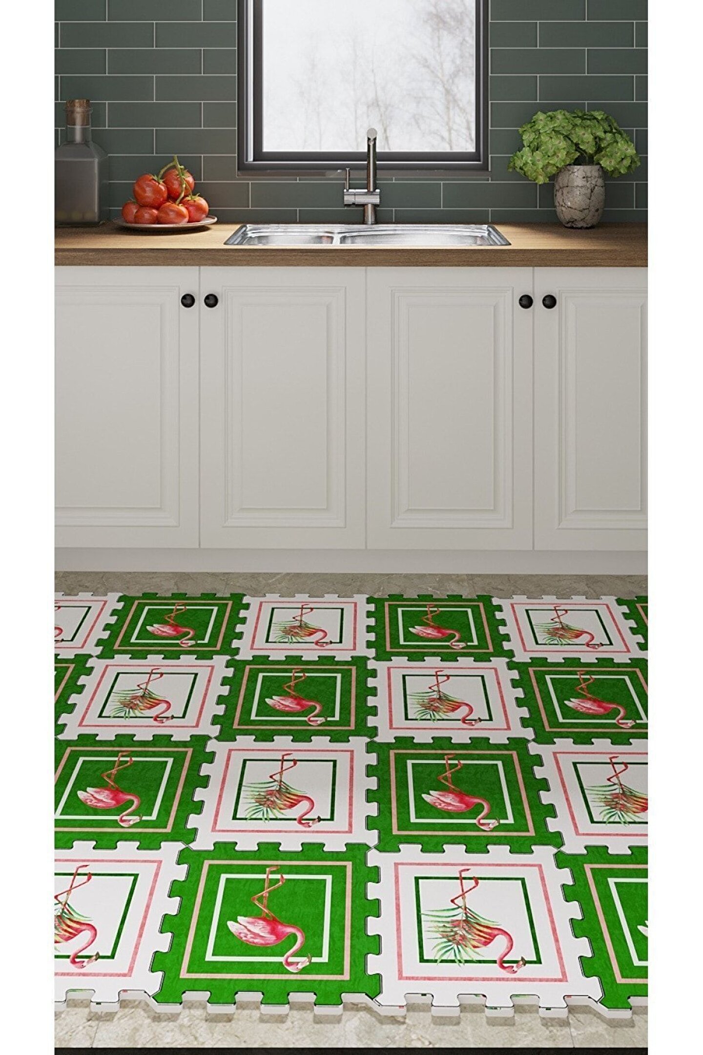 Tokyo Halı Leylekli Yeşil Beyaz Mutfak Halısı Thm10 | Yapboz Halı | Puzzle Halı