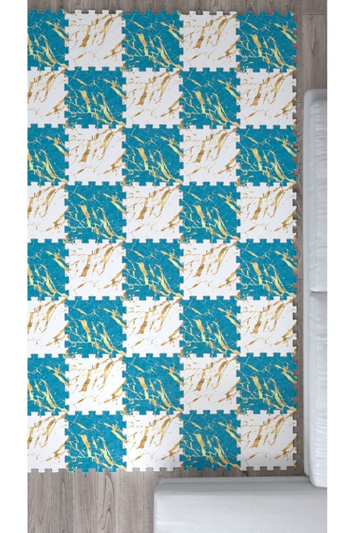 Tokyo Halı Mavi Beyaz Desenli Salon Halısı Ths27 | Yapboz Halı | Puzzle Halı