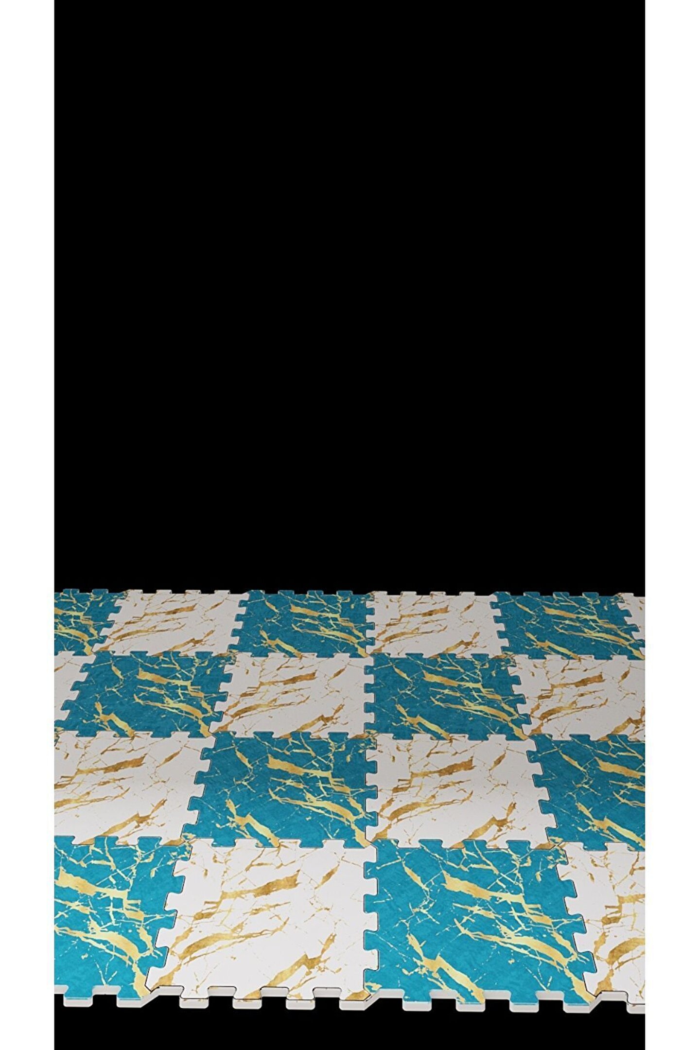 Tokyo Halı Mavi Beyaz Mermer Desenli Mutfak Halısı Thm27 | Yapboz Halı | Puzzle Halı