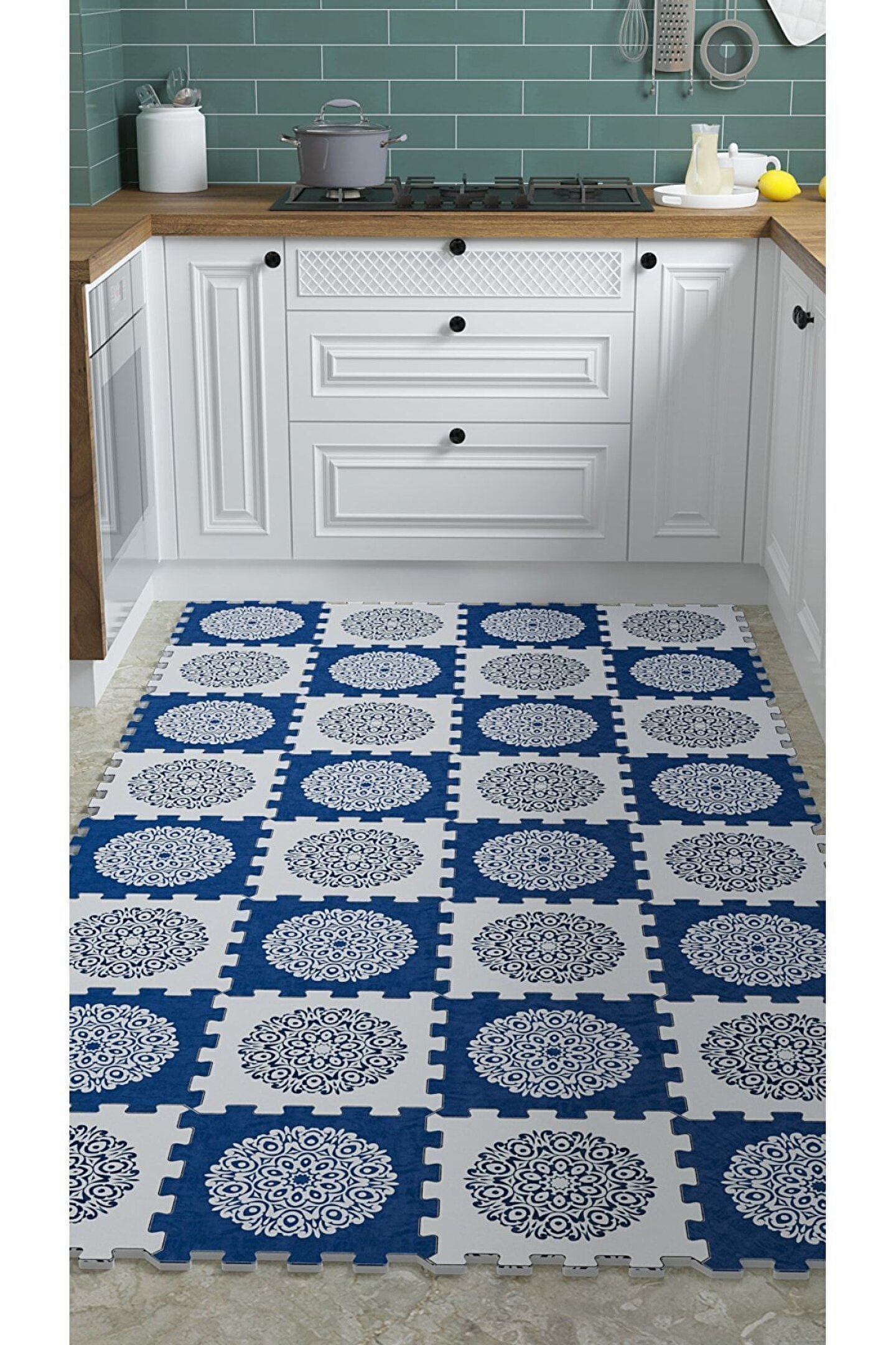 Tokyo Halı Mavi Beyaz Mutfak Halısı , Puzzle Halı, Yapboz Halı, Mavi Halı Thm11 | Yapboz Halı | Puzzle Halı