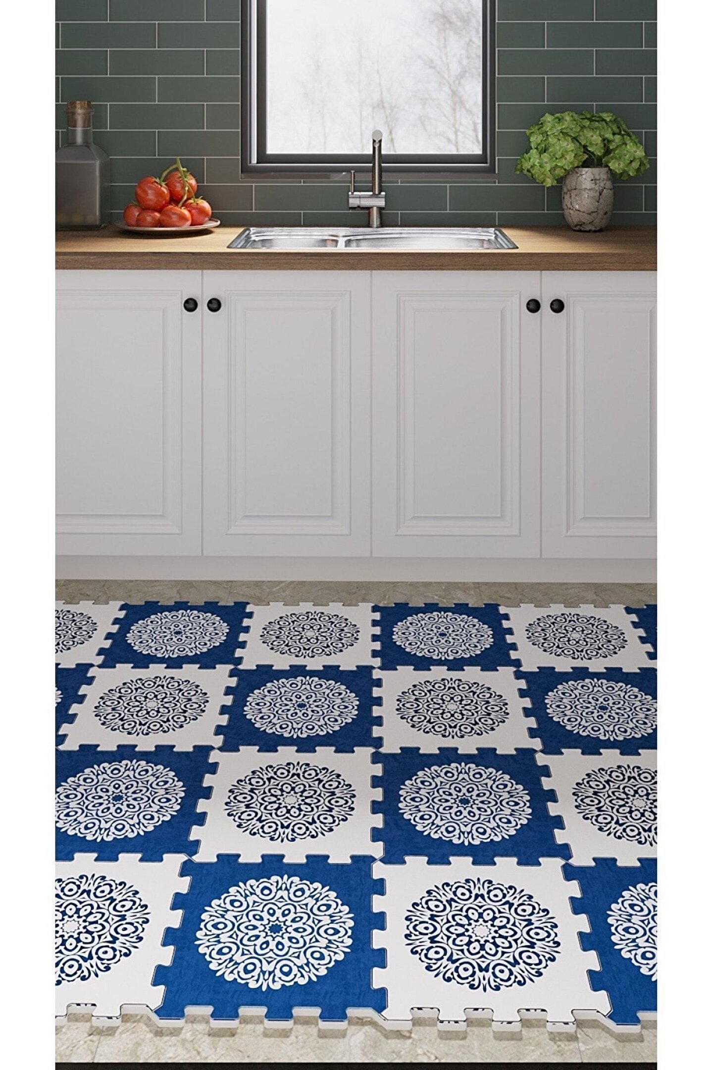Tokyo Halı Mavi Beyaz Mutfak Halısı , Puzzle Halı, Yapboz Halı, Mavi Halı Thm11 | Yapboz Halı | Puzzle Halı