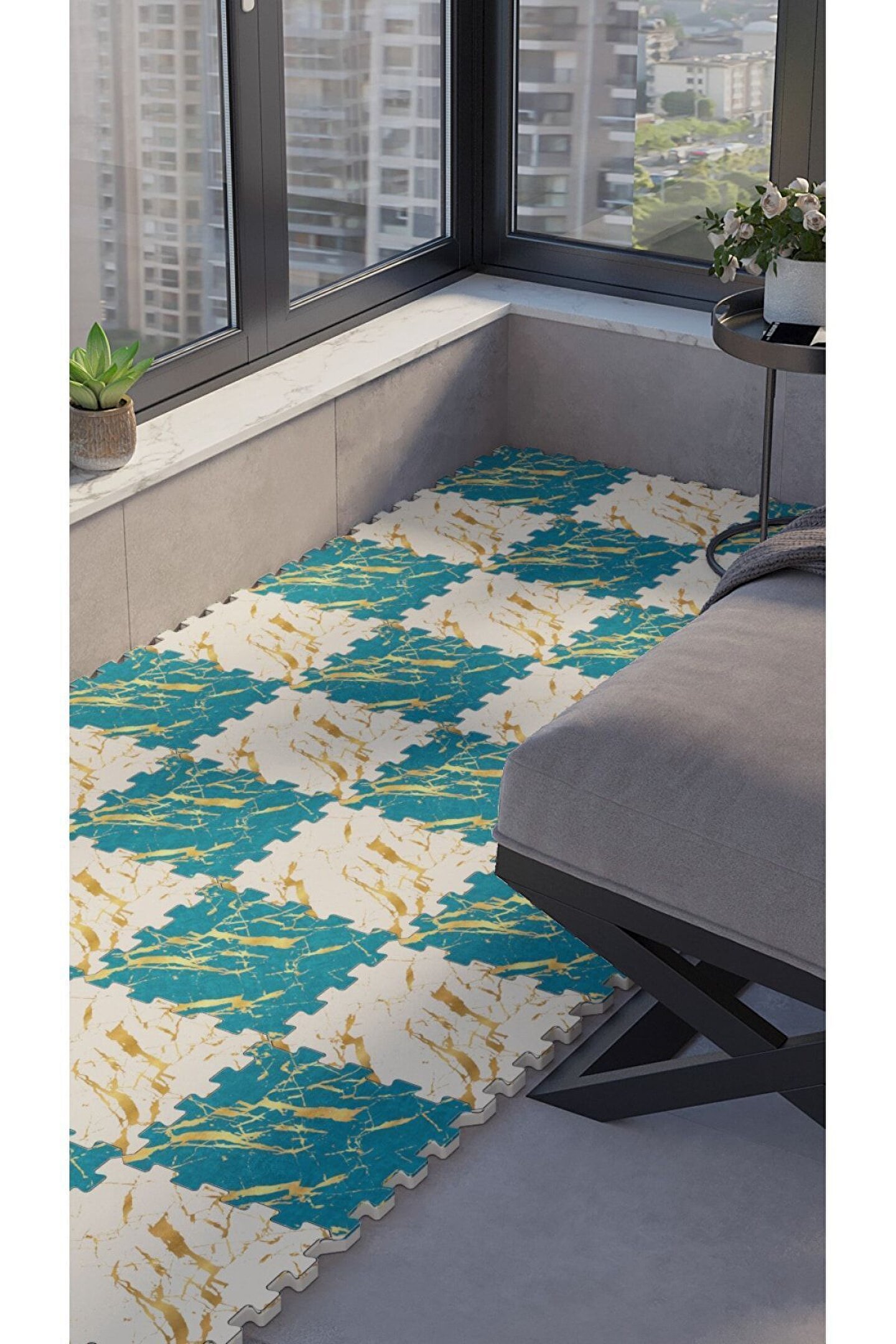 Tokyo Halı Mermer Desenli Cam Balkon Yer Halısı Yhb27 | Yapboz Halı | Puzzle Halı