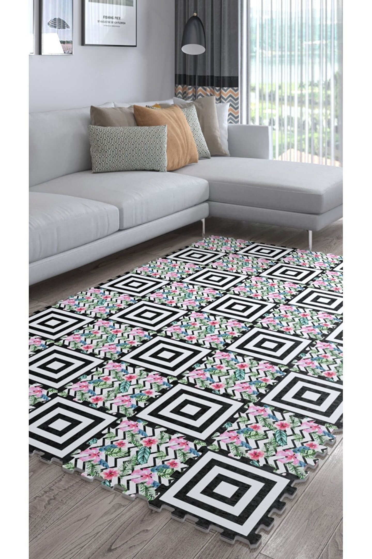Tokyo Halı Renkli Model Dekoratif Yıkanabilir Salon Halısı Ths7 | Yapboz Halı | Puzzle Halı